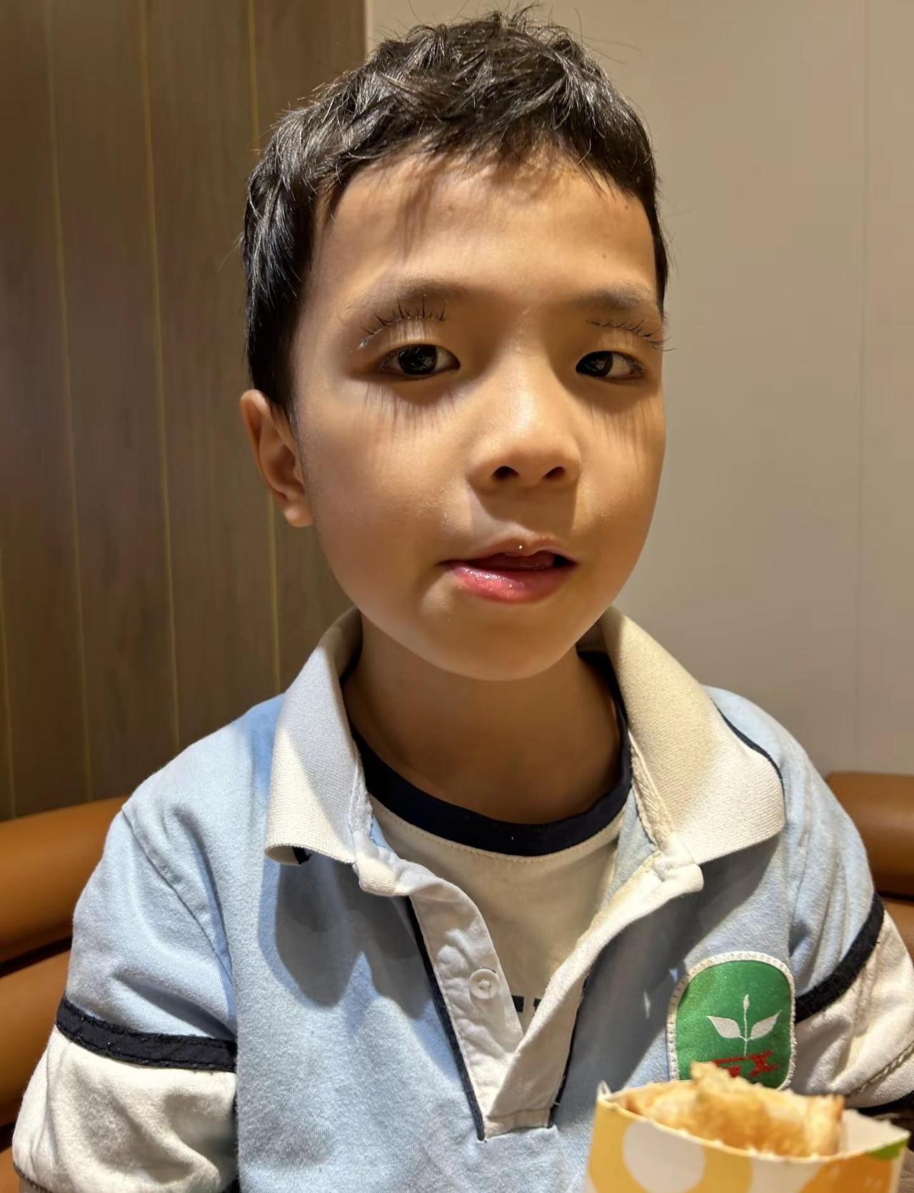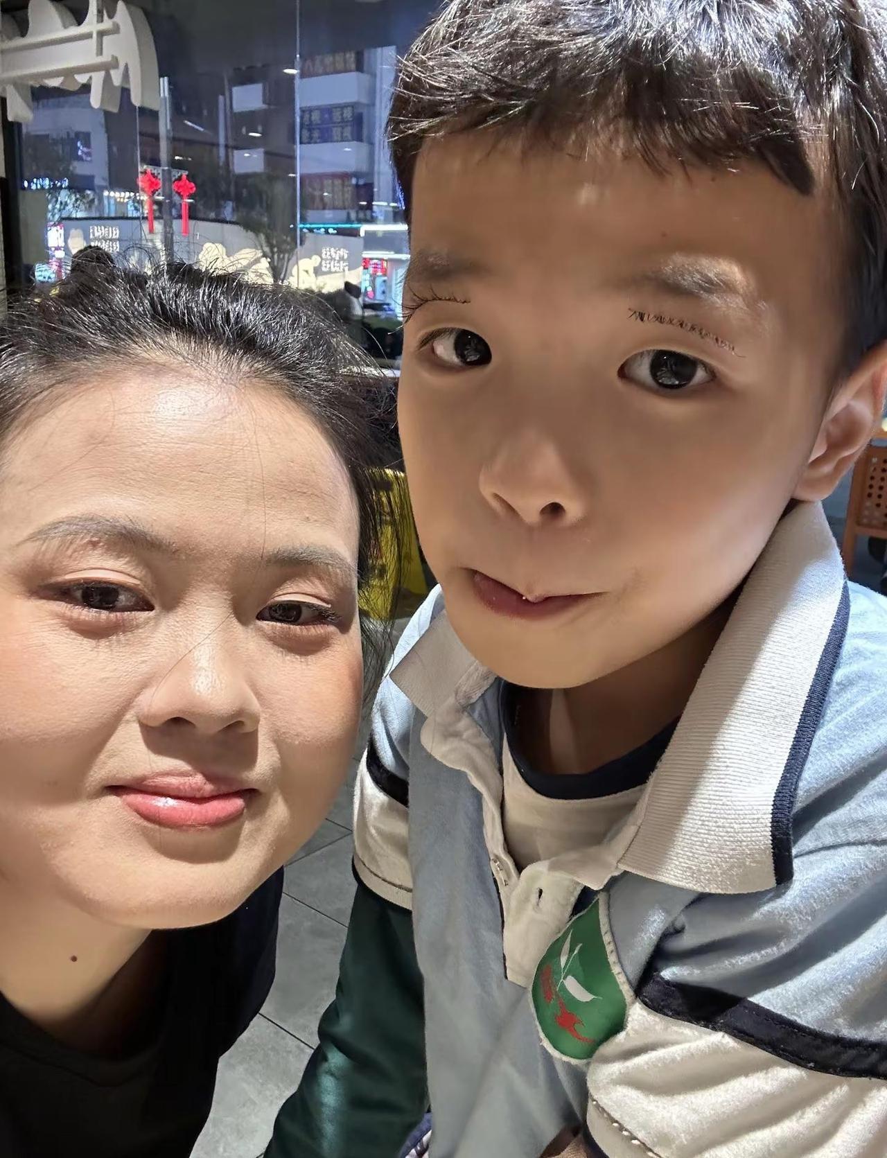 和小学鸡珍贵的合影 我的假睫毛贴到了他的眼皮上…🎄