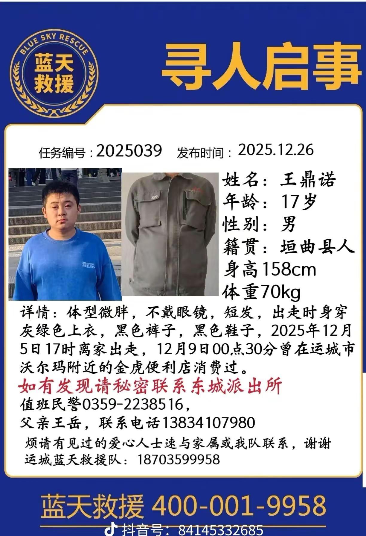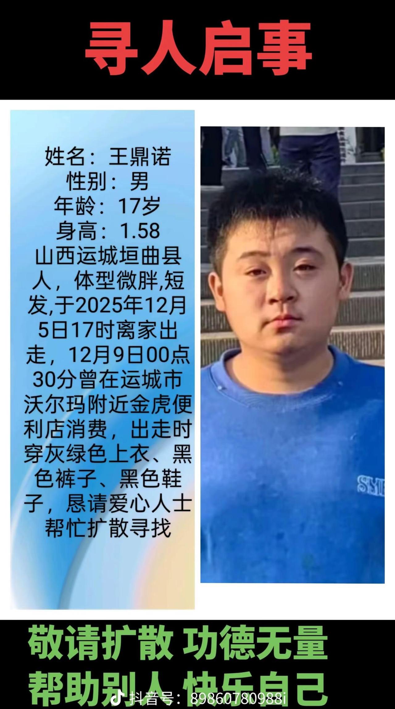 紧急寻人,山西运城17岁娃失联,家人急盼回家,望大家相互转发,让爱❤️回家