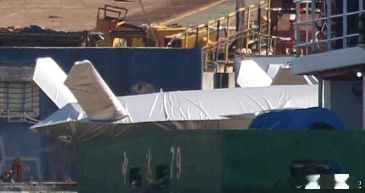 好家伙,果然一到年底就各种惊喜不断啊![泣不成声][泣不成声][泣不成声]本以为“中达79号”这条武库舰已经够离谱的了,没想到今天居然又出现了更离谱的装备。 怎么样,大家瞅着都眼熟吧。从图一和图二空中卫星看,这条大筒子垂发民用武库舰,这船尾居然又拉上了一架外形酷似“飞鸿-97”系列的无人僚机。 这还不算完,在陆地上数了下居然还有5架在等着上船。 这啥意思?莫非咱们这条货船还有无人机运输母舰的功能?这想想都刺激...[狗头][狗头][狗头]