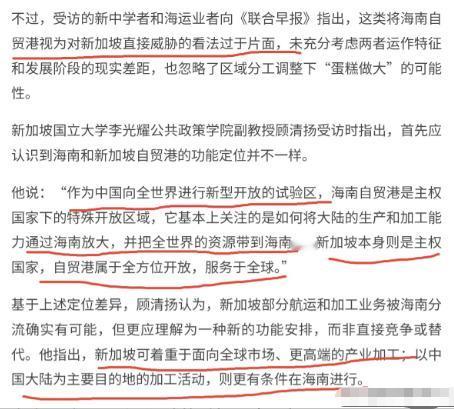在海南正式封关之后,12月27日,新加坡联合早报刊文表示,当前围绕“海南取代新加