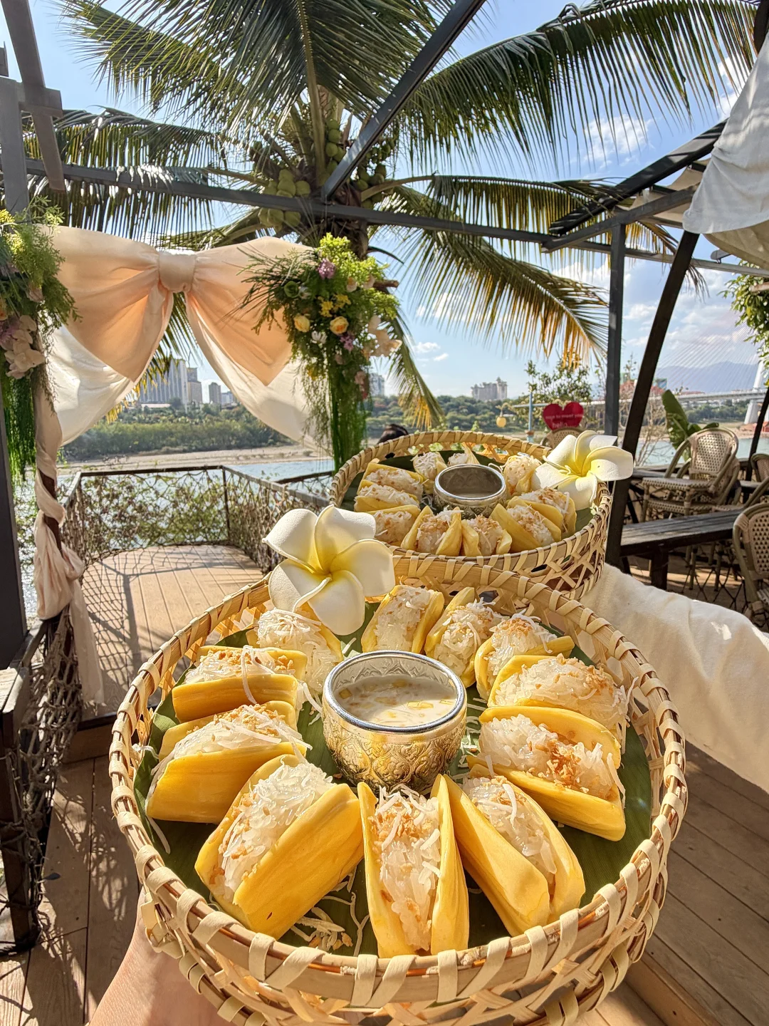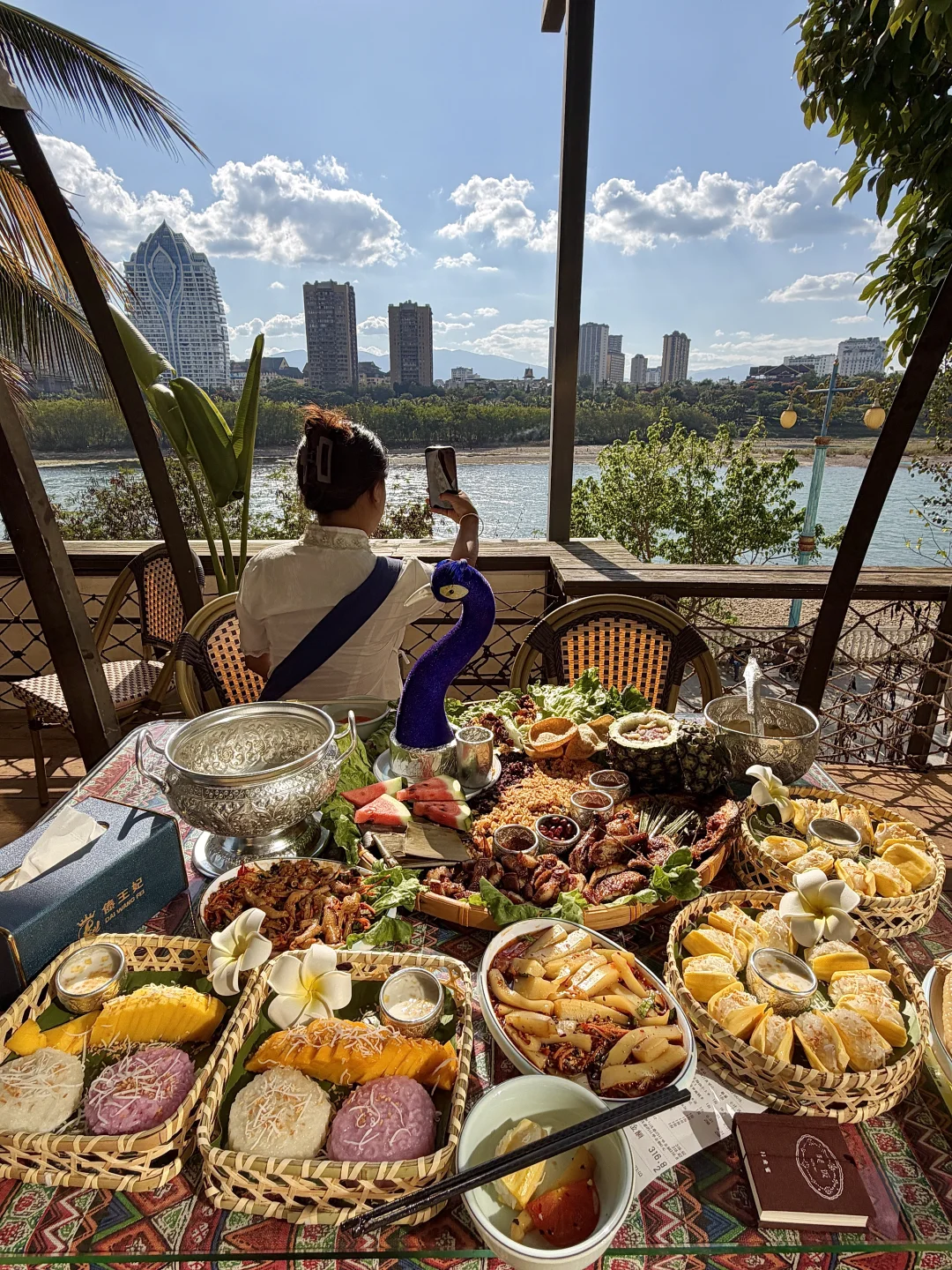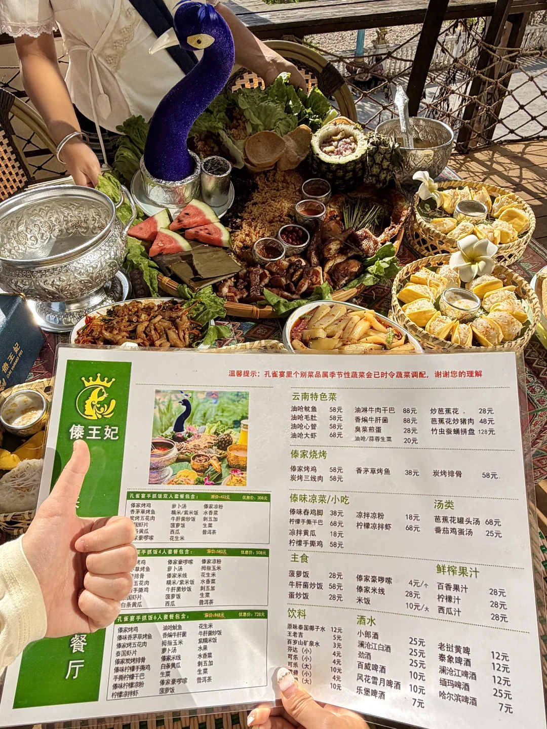 发自内心的认可!!确实名不虚传好好吃 感谢西双版纳网友带路!才能吃到这家(傣王妃)离星光夜市和大金塔都不远~走路几分钟就到了 他家露天花园真的好出片📷好好看!!氛围真的爱了!除了环境主打的孔雀宴也一口惊艳~手抓饭里面有烤鸡、烤鱼、五花肉、炸猪皮、紫米饭……分量好足!我们四五都吃不完🥹🥹真心平价好好吃 西双版纳美食 甜品 甜品治愈一切 西双版纳 大声安利本地美食 西双版纳小吃 傣椿傣味火锅 傣王妃孔雀宴 西双版纳旅行 西双版纳美食推荐 云南旅游攻略 当地人都爱吃 云南美食