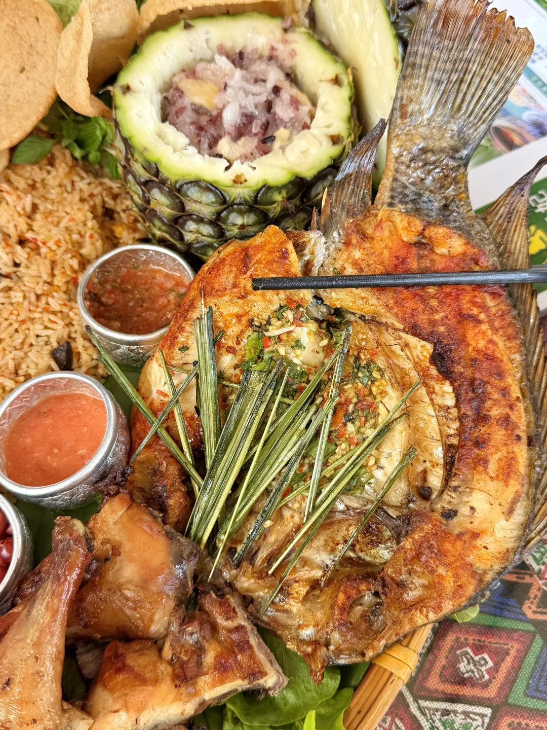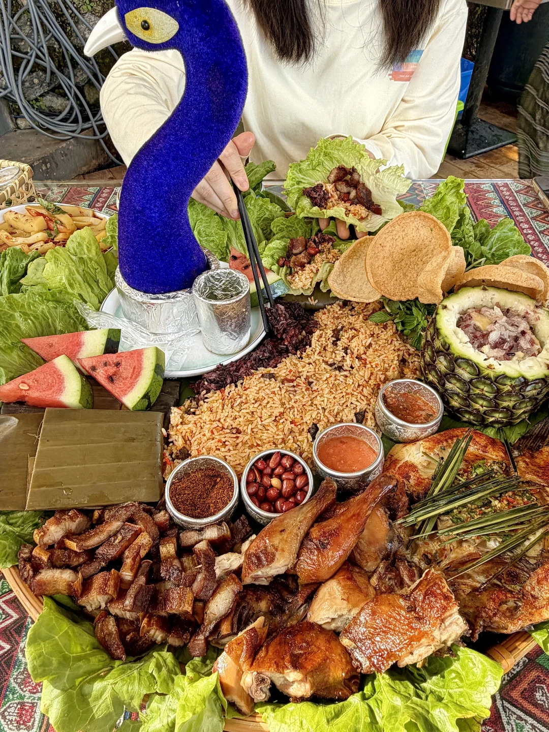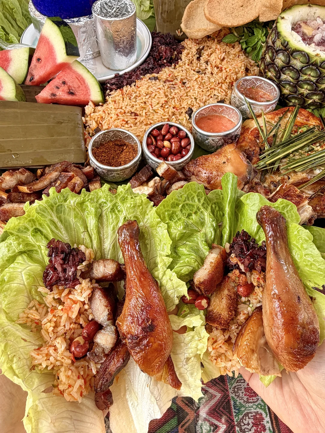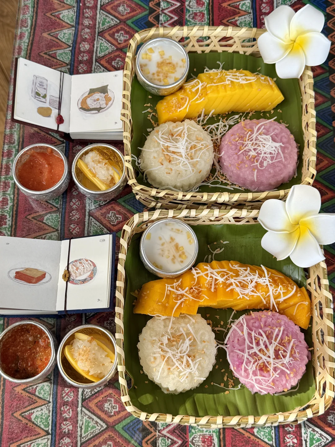 发自内心的认可!!确实名不虚传好好吃 感谢西双版纳网友带路!才能吃到这家(傣王妃)离星光夜市和大金塔都不远~走路几分钟就到了 他家露天花园真的好出片📷好好看!!氛围真的爱了!除了环境主打的孔雀宴也一口惊艳~手抓饭里面有烤鸡、烤鱼、五花肉、炸猪皮、紫米饭……分量好足!我们四五都吃不完🥹🥹真心平价好好吃 西双版纳美食 甜品 甜品治愈一切 西双版纳 大声安利本地美食 西双版纳小吃 傣椿傣味火锅 傣王妃孔雀宴 西双版纳旅行 西双版纳美食推荐 云南旅游攻略 当地人都爱吃 云南美食