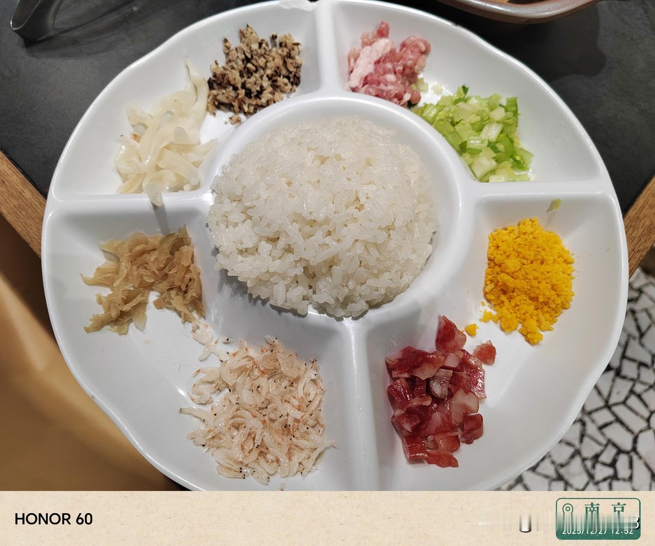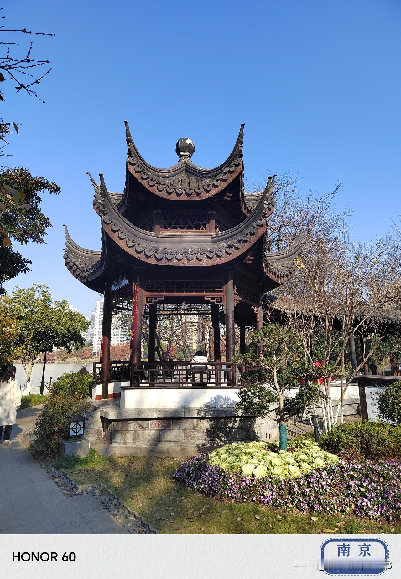 今天南京市阳光灿烂,最高温度已经升到10℃,比前两天暖和不少。 今天女儿也在家里休息,中午家里没有烧饭,我们在外面吃个特色粥底火锅。建邺区云锦路上的活泼先生.顺德粥底火锅是大众点评必吃榜,在大众点评团购了一个189元的VIP三人套餐。锅底是顺德非遗毋米粥特色锅底,菜品有:海鲜拼盘(鲍鱼、对虾、生蚝、鱿鱼)、鲜切吊龙、鲜切清远走地鸡、中山脆鲩鱼片、鲜切猪梅花肉、广东西洋菜、响铃卷、娃娃菜、灵魂粥底全家福、经典大油条,还有秘制调料,打卡还送一份米布丁。 这家店生意火爆,中午去晚一点还要排队等着翻台,我也是第二次来店里吃,食材比较新鲜,味道不错,性价比高。 吃完中饭,坐公交车到莫愁湖公园逛了一圈,沿公园里的栈道走一走,晒晒太阳,看看风景,非常的惬意。