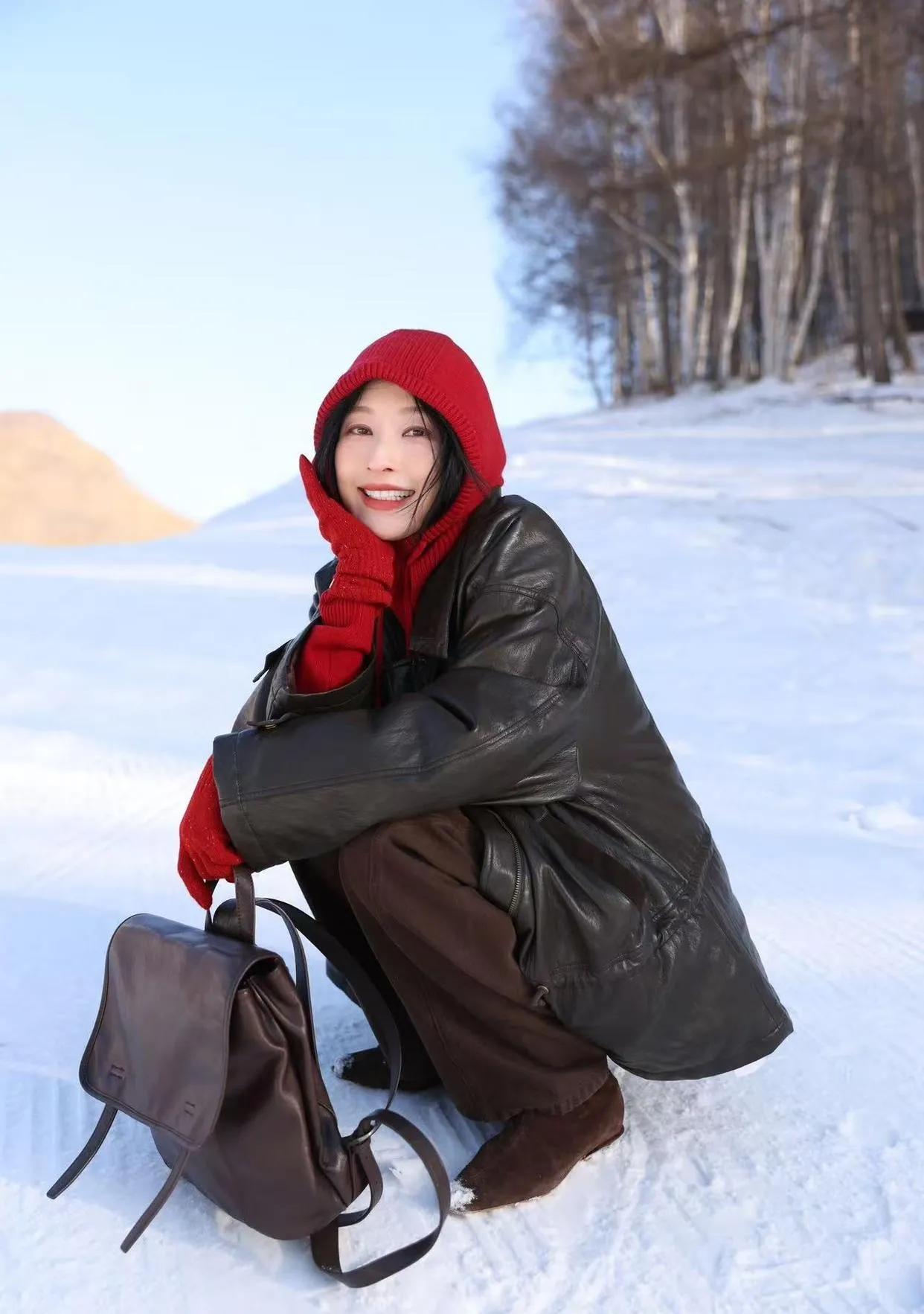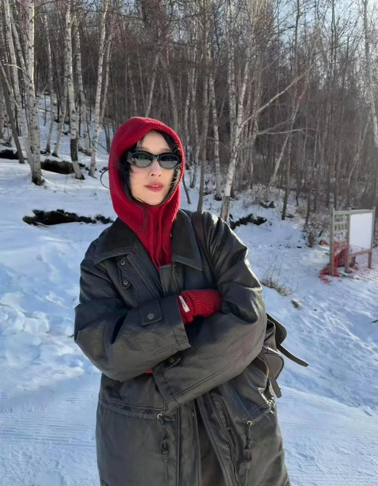 张俪的冬日穿搭,红黑配太有氛围感了 张俪这组雪地穿搭也太会了吧!黑色皮质外套酷飒有型,内搭红色针织开衫,再配上同色系的针织头巾和手套,红黑撞色在白雪的映衬下格外亮眼,下装搭棕色阔腿裤,复古又大气。 简约的配色却穿出了满满的故事感,雪地中的造型又美又飒,果然是穿搭高手,把冬日氛围感拿捏得死死的!