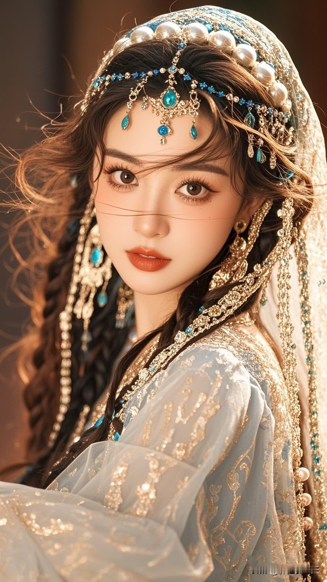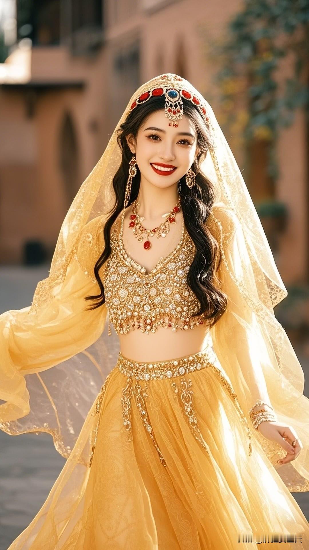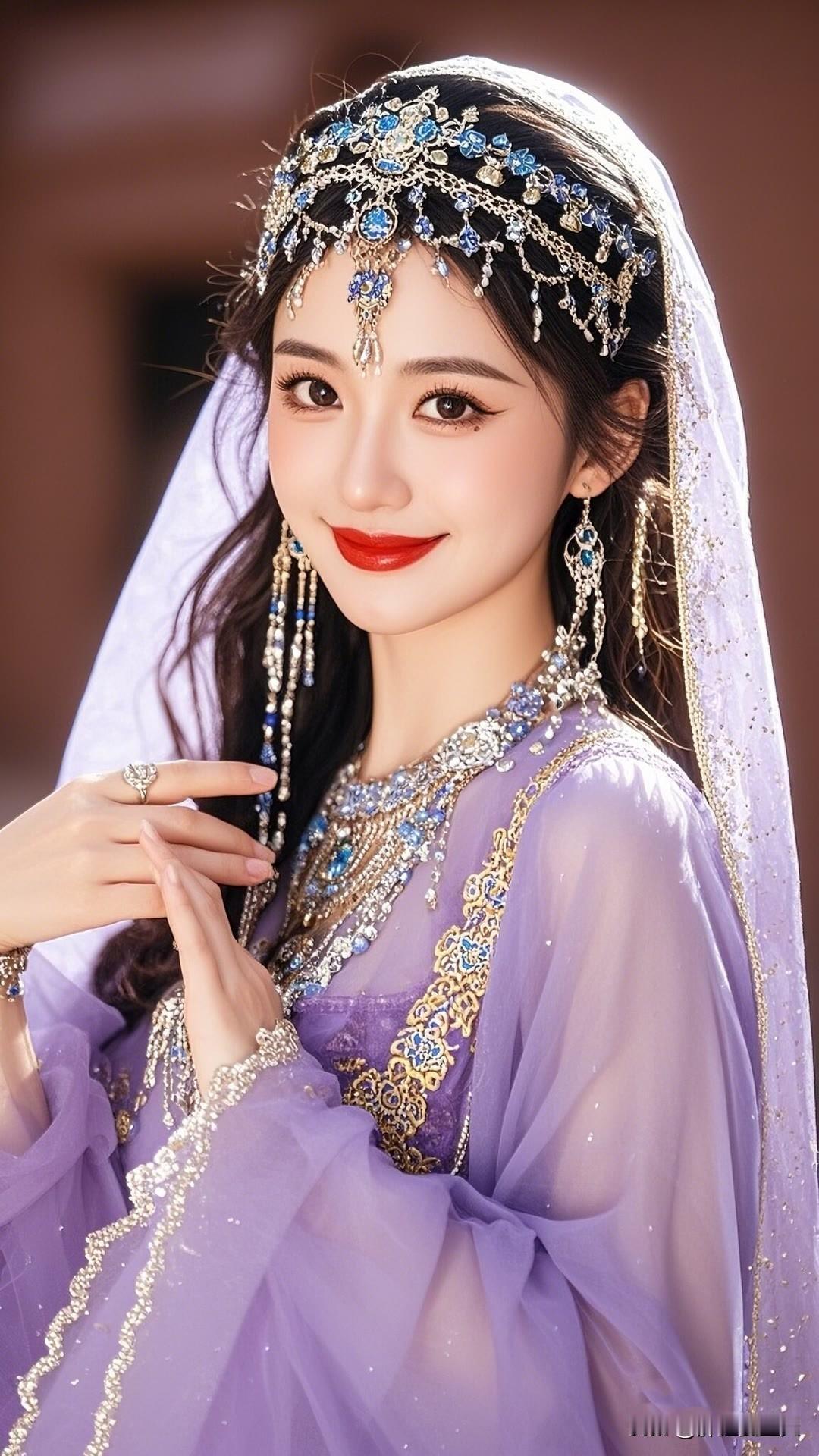 异域风情少女,头戴花冠,身着华丽服饰,微笑迷人。美女人像群