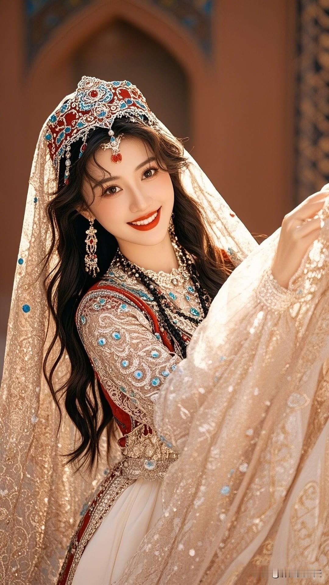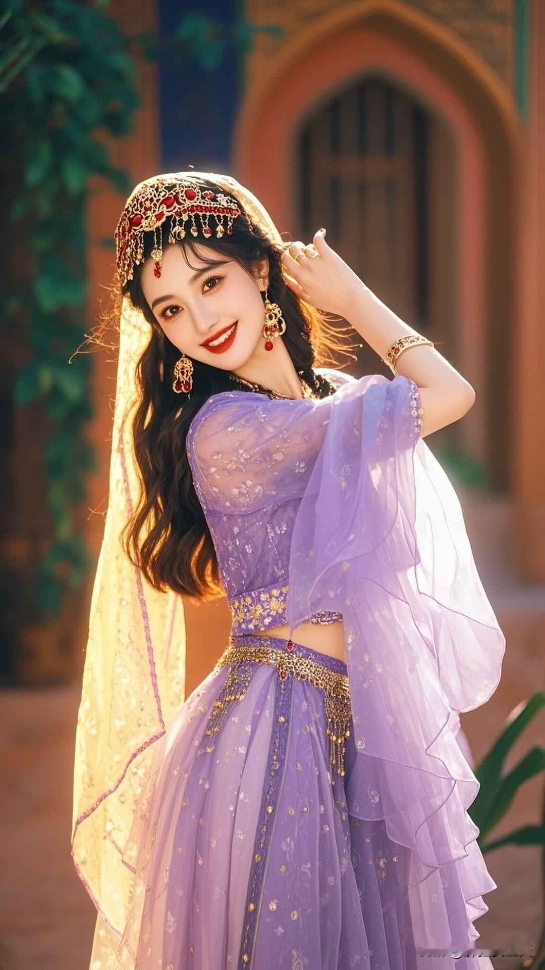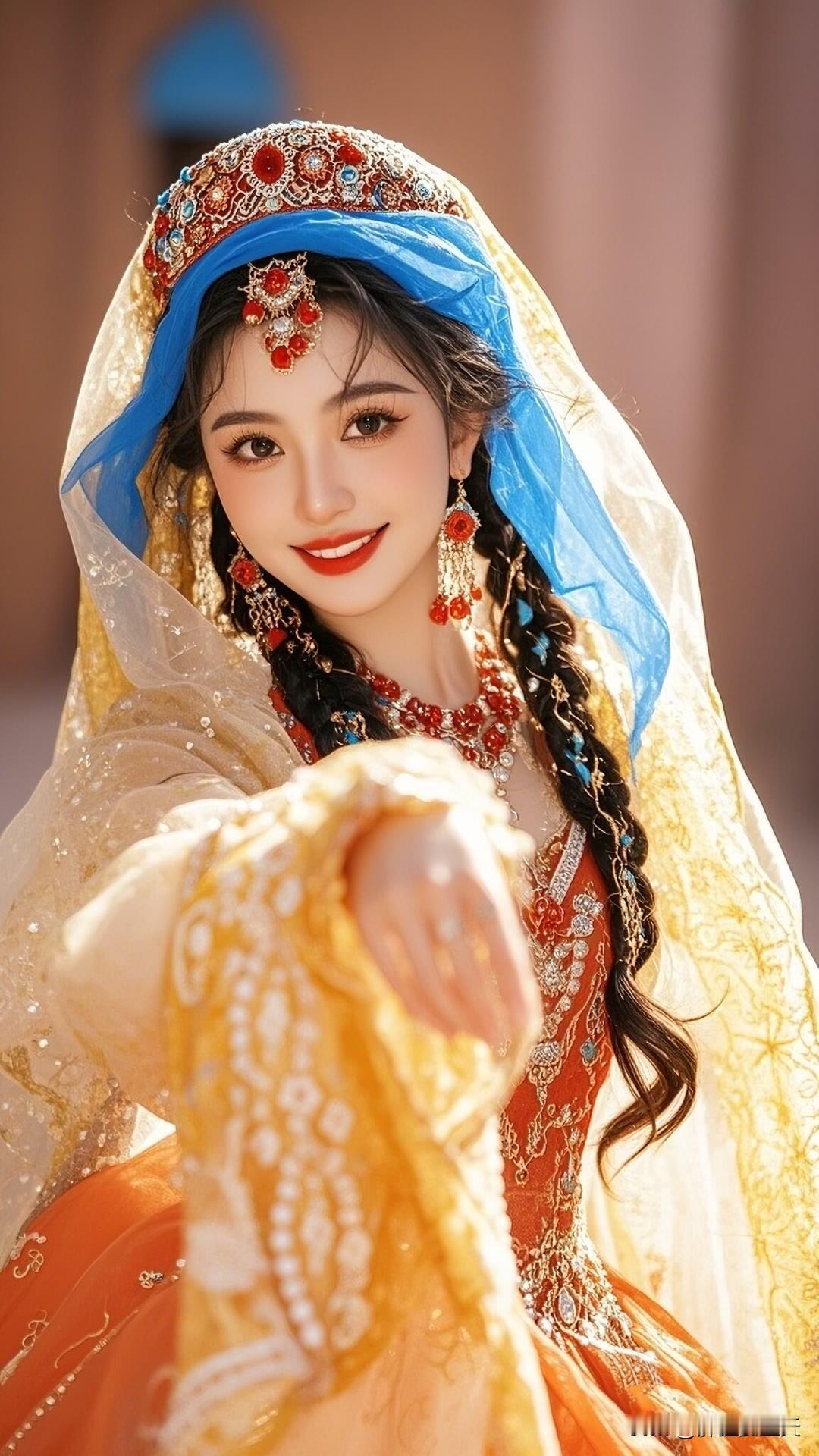 异域风情少女,头戴花冠,身着华丽服饰,微笑迷人。美女人像群