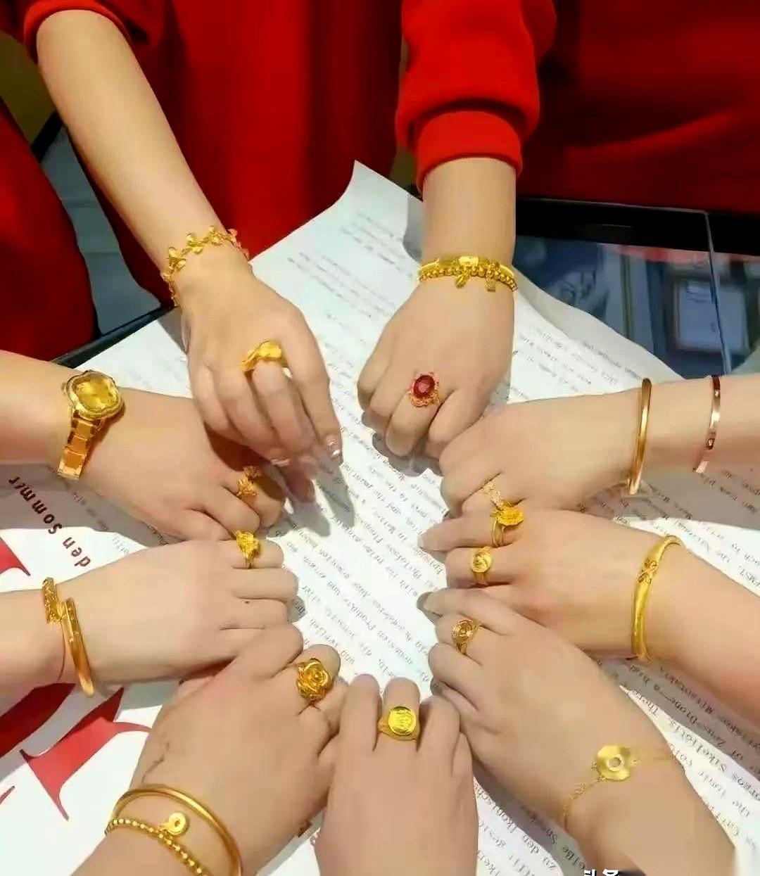 回村吃了顿席,给我上了一课。 菜还没夹几口,眼先被晃瞎了。我这一桌,从我妈往左数,再往右数,一圈的女同胞,手腕上,那叫一个金光灿灿。 粗的、细的、带坠儿的、叠着戴的…… 反正,标配,人手一个打底。 就我,两手空空,光溜溜的,夹个菜都感觉伸出去的手有点寒碜。 旁边一大姨特热情地问我:闺女,城里上班不兴戴这个啊? 我脸一热,脑子飞速运转,挤出个笑:嗨,戴着敲键盘不方便。 天知道我心里在咆哮:不是不方便,是没有啊!!! 我什么时候被开除“女籍”的?金镯子啥时候成了全国统一发放的装备了?我怎么没领到? 那一刻,我跟我妈对视了一眼,我俩像两个误入“贵妇局”的实习生,连呼吸都变得小心翼翼。 我突然就懂了。 这玩意儿在城里,可能就是个装饰品,是消费,是悦己。 但在村里,在今天这个桌上,它不是。 它是底气,是实力,是“我家过得还不错”的最直接的声明。 是一种不用开口,就能让别人闭嘴的硬通货。 想起我那个被我嫌弃碍事、在首饰盒里躺了快十年的婚戒,突然感觉,有点烫手。