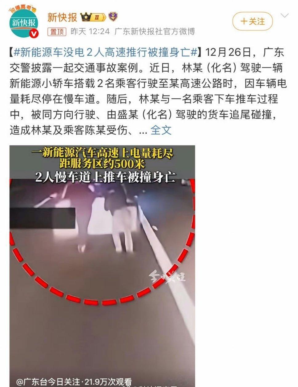 新能源车没电2人高速推行被撞身亡疑点挺多:1.明知道快没电了还跑。2.乘客建议去服务区充电,他不去。3.没电了不叫拖车让人推。猜测原因:1.赶紧赚钱。2.高速服务区电费高,想省钱。或者到优惠时段充电,想省钱。3.高速拖车贵,想省钱。 一个小重点:这事和新能源其实没什么直接关系,更不是什么续航焦虑没法充电,硬说关系的话,就是这人为了省钱,买了新能源跑顺风车。