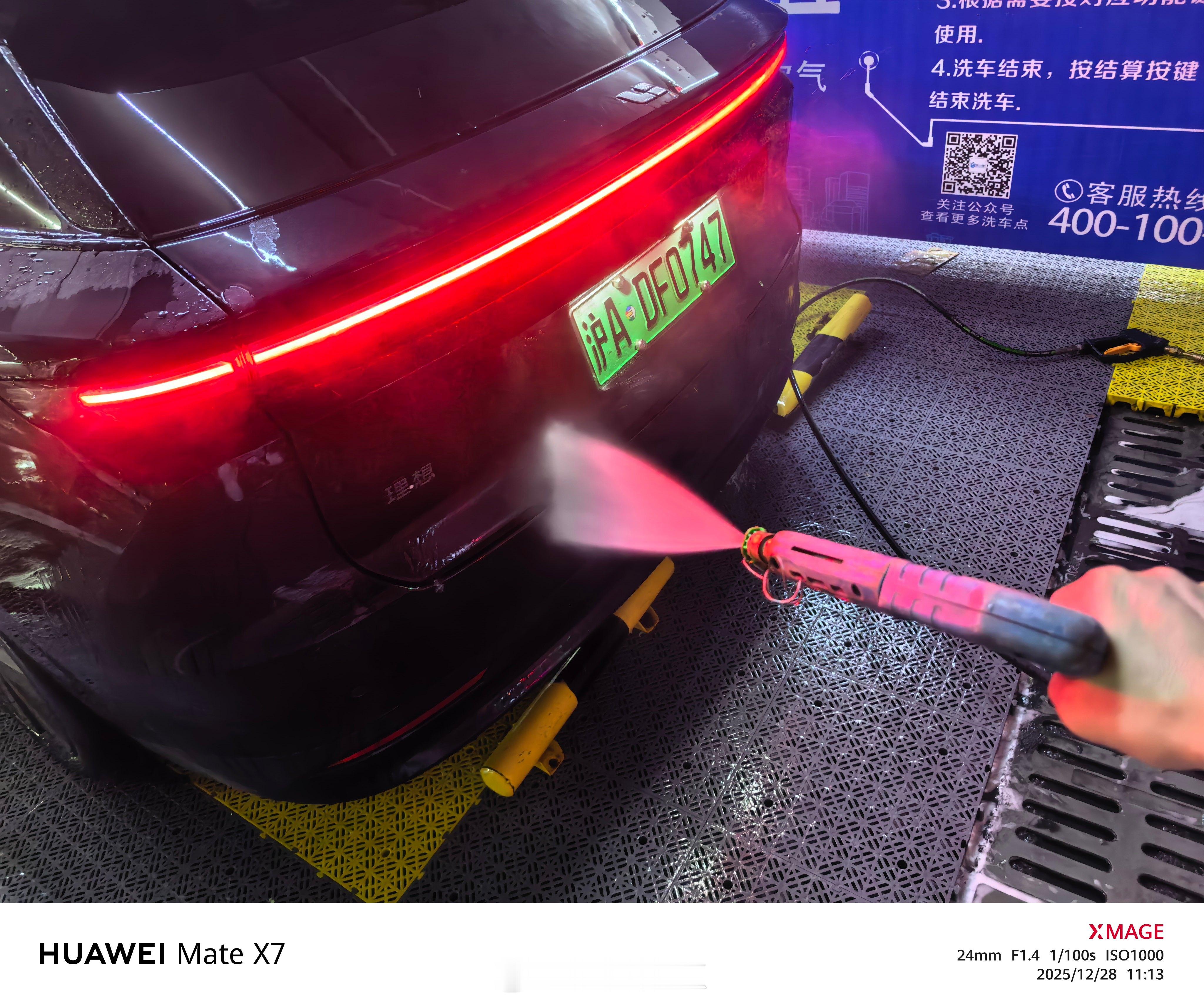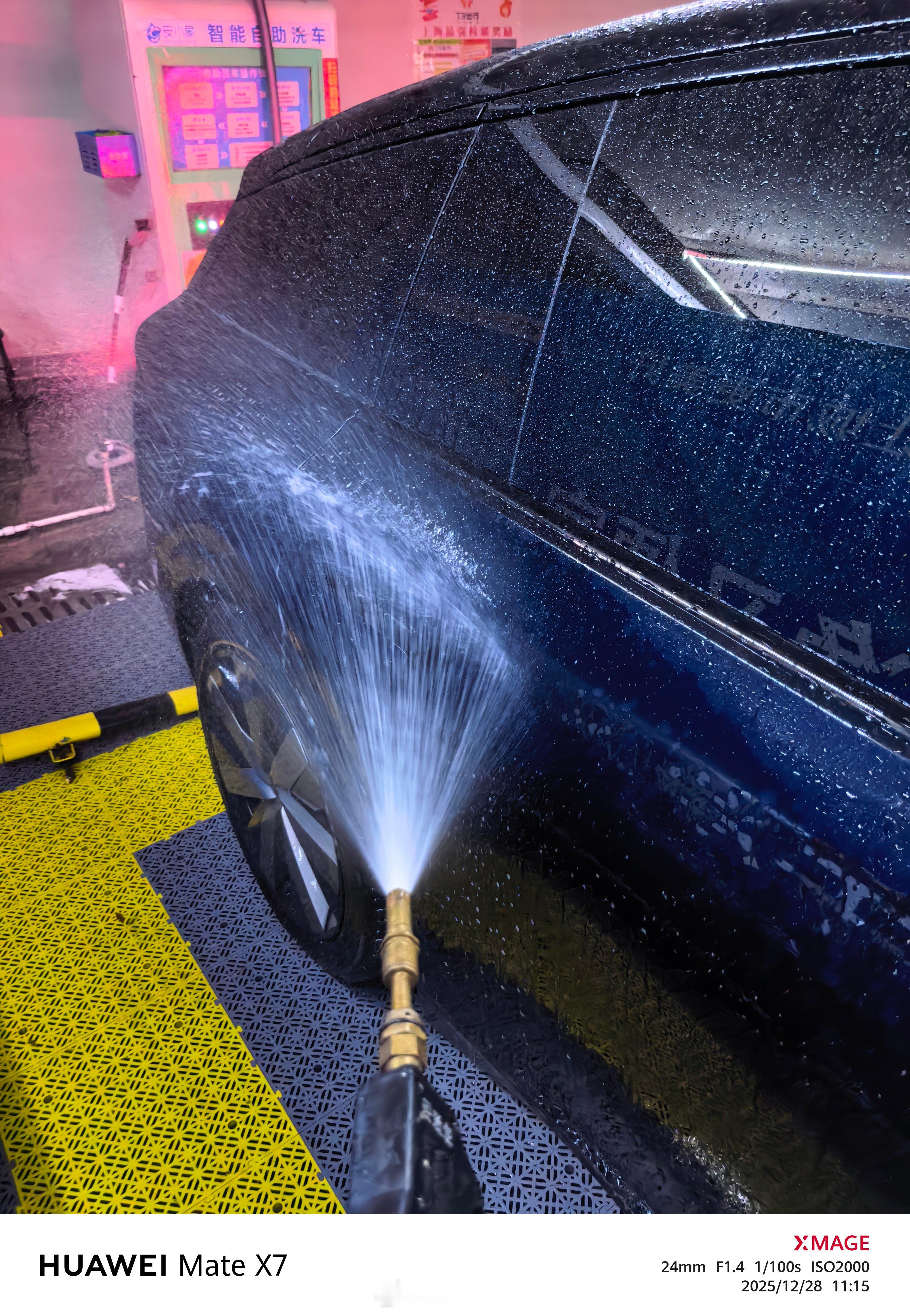 第一次自助洗车,还挺解压的!洗了不到10分钟,才4块钱。比人工洗车快、比人工洗车便宜。这里有四个工况,所以排队情况也是比较少,且是24小时开放!洗完之后,坐车里可以看到光的斑斑点点,还挺好看的。今天是要开理想i6和一起去杭州,她说不想看到易烊千玺的车那么脏,所以才去洗的。确实,黑色太不耐脏了,脏了很难看,图7可以看到洗车前后的变化。理想i6