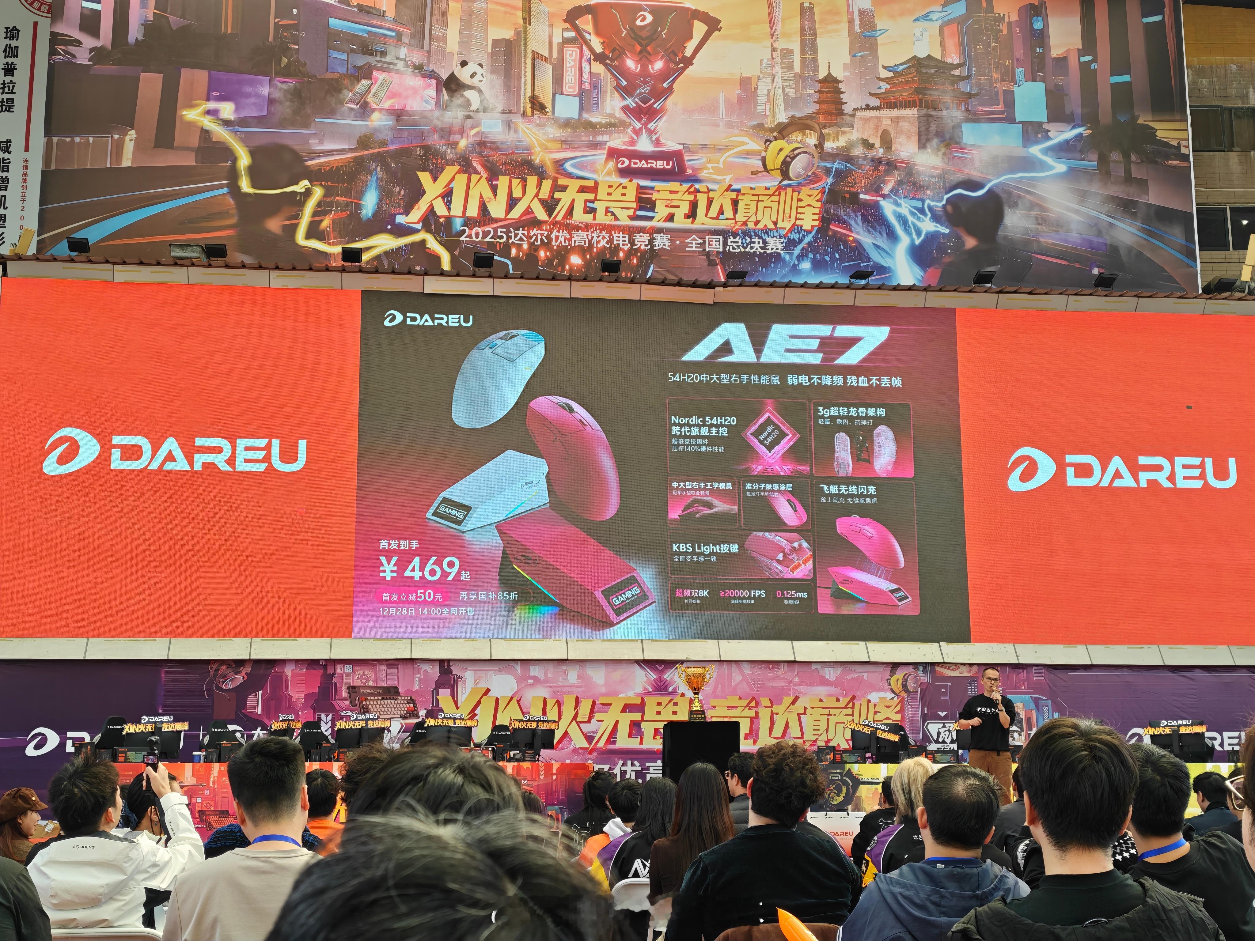 过来大学城看看达尔优今日发布的旗舰无线游戏鼠AE7,定位中大型右手鼠标,54H20主控和定制PAW3950传感器(AIM-750),真·双8K回报率,带接收器兼Qi无线充电底座,抗干扰能力强,500mAh电池,重59g,补贴后首发售价469元起。达尔优AE7 XIN火无畏高校赛 广州·广州大学(大学城校区)