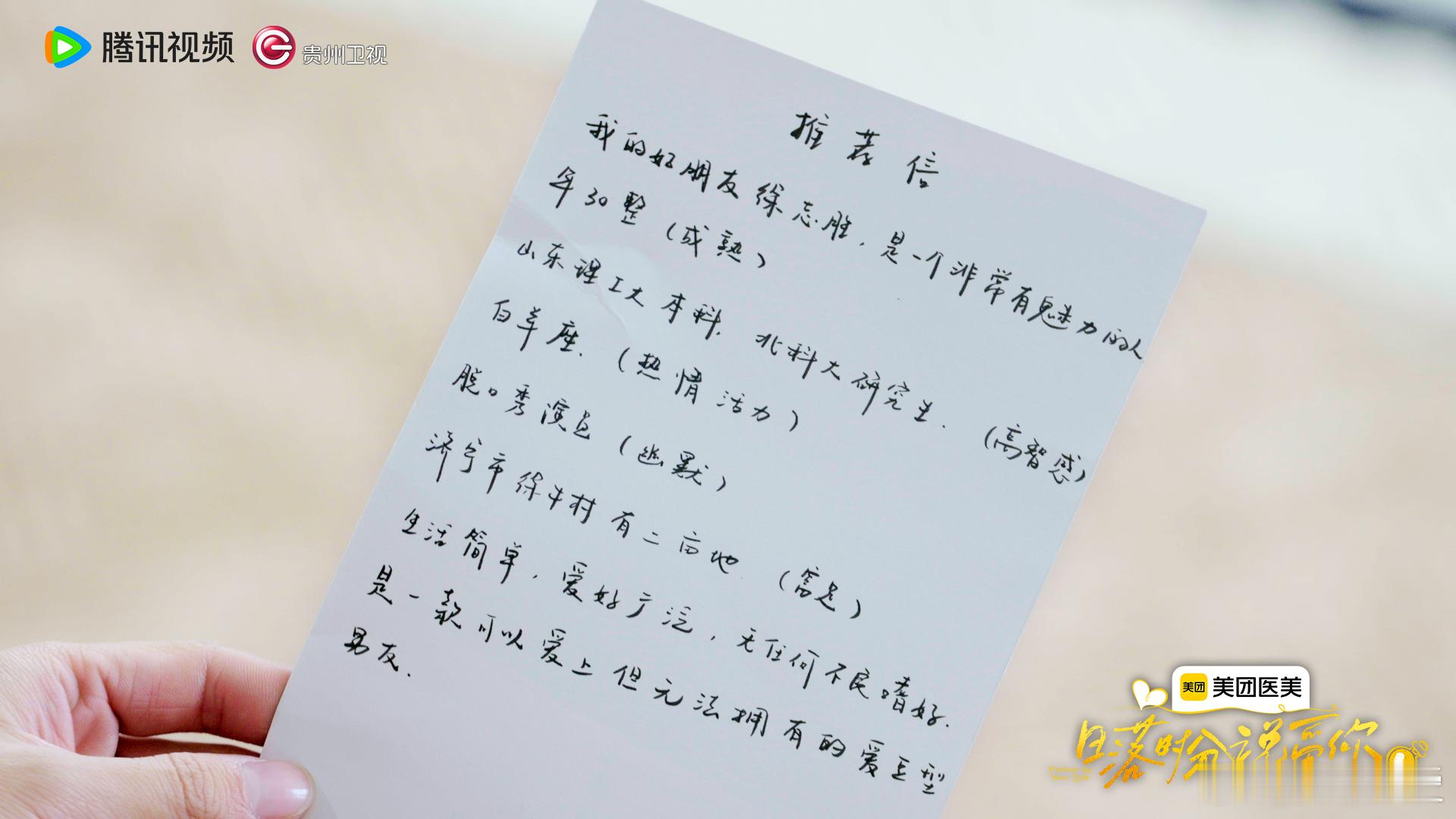 沈月说徐志胜是爱豆型男友日落时分说爱你 在《日落时分说爱你》陪看现场,沈月太会整活啦!给徐志胜写恋综推荐信,还称他是“你想要又得不到的爱豆型男友”,这独特的夸赞方式把现场氛围直接炒热,徐志胜估计都懵圈又窃喜,这两人互动太有看点啦!