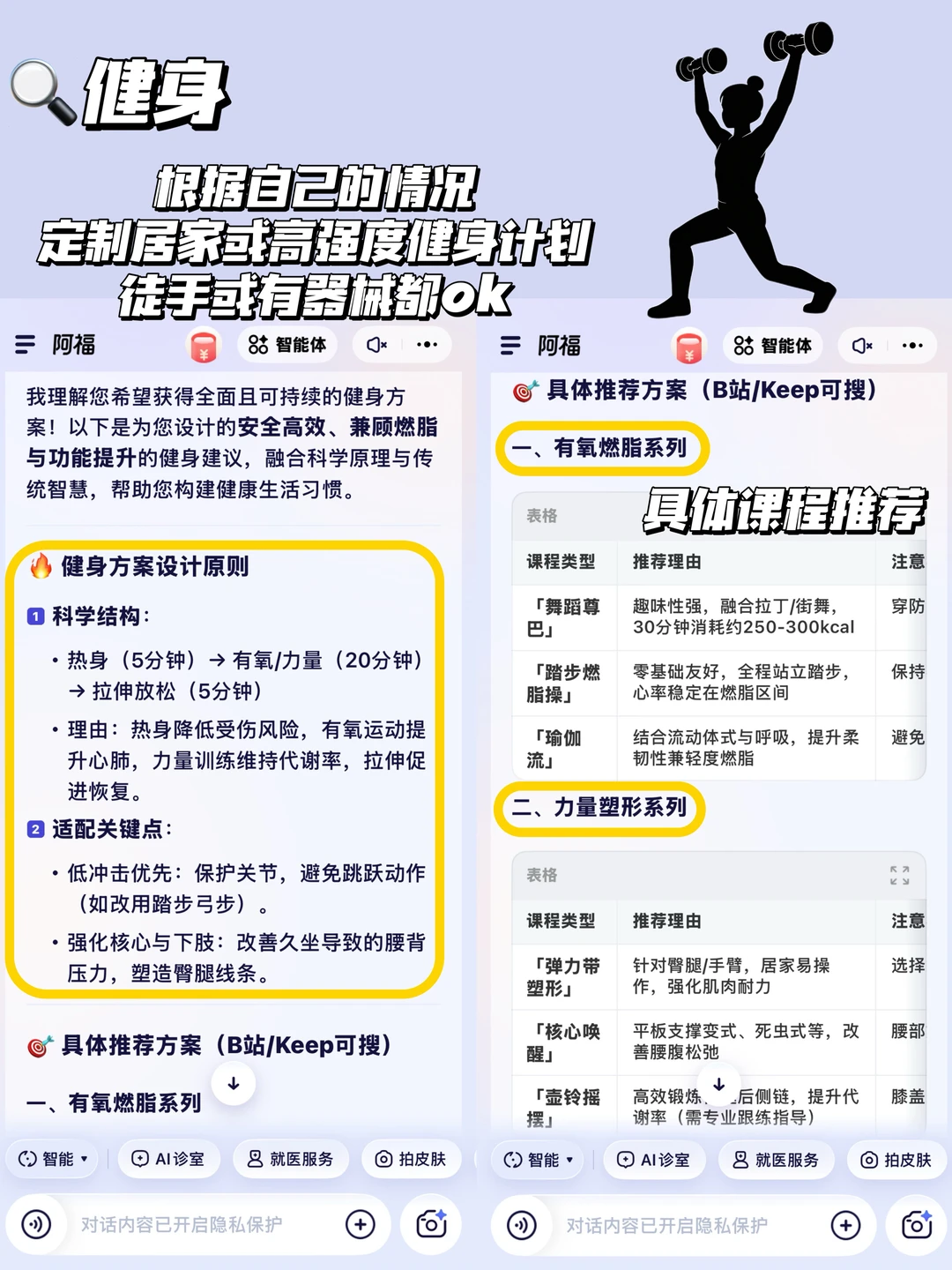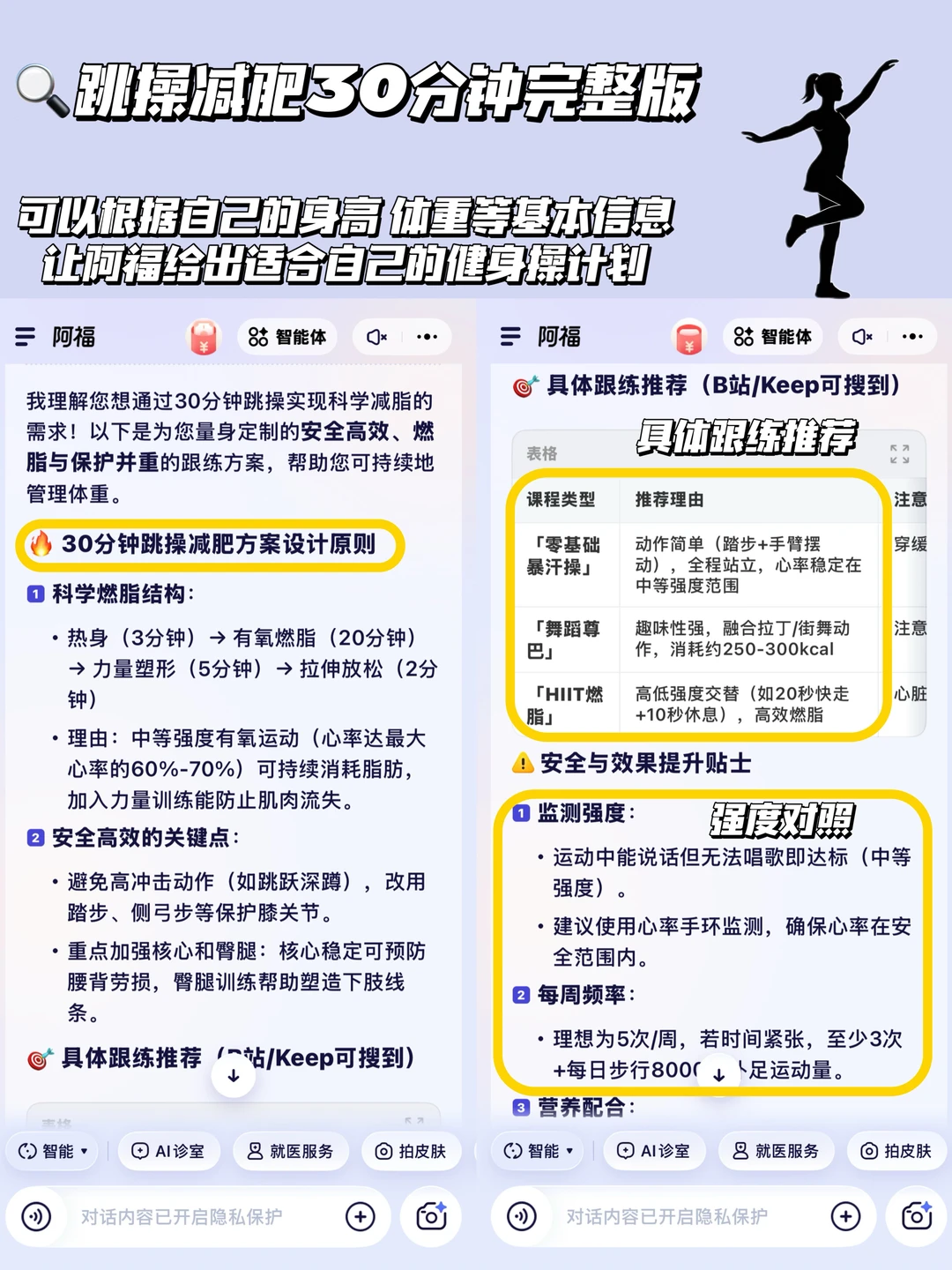 新手不用自己查攻略、凑计划,跟着阿福AI给出的计划练就能高效实现减肥操瘦全身,再也不用白忙活!