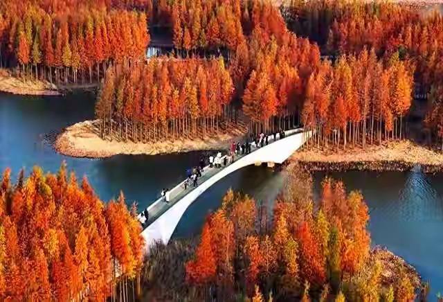 鱼尾洲公园是南昌最具特色湿地公园。鱼尾洲公园是南昌最具特色湿地公园,它位于南昌市青山湖区艾溪湖北路,是一座海绵城市生态湿地公园,前身是废弃鱼塘和粉煤灰填埋场,经生态修复建成含136座人工岛屿的湿地系统。公园以池杉、水杉为主体植被,秋冬季节呈现出错落有致、层林尽染的漂浮森林景观,美不胜收,让人流连忘返。其设计者是北大著名教授俞孔坚,他带领设计的中国江西南昌鱼尾洲公园,获美国景观设计师协会(ASLA)大奖。红杉树 鱼尾洲公园 俞孔坚 水杉