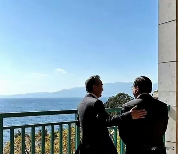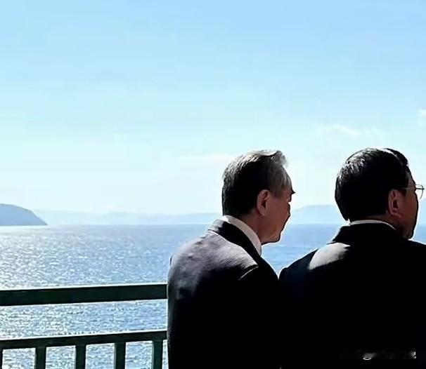 抚仙湖畔, 两位外长的“松弛时刻”! 云南的天空, 总是那样么蔚蓝; 抚仙湖的水, 亮得能照见云影。 王外长和柬埔寨外长, 站在临湖的阳台上聊开了, 没有会议时的严肃, 很像似一对老朋友在聊天! 在湖光山色的美景中, 临湖望远不失为一种“放松”。 眺望远方的山和水, 让思绪烦恼早飘到天边了。