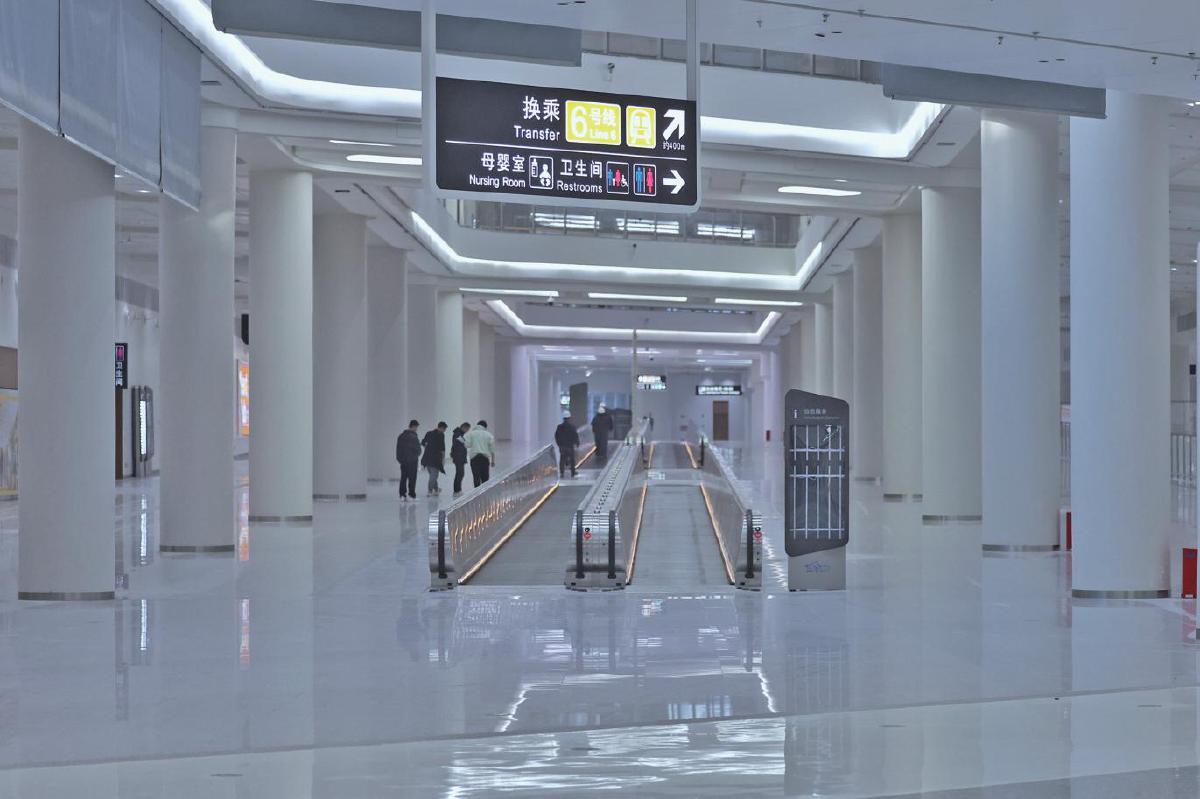 副中心枢纽的地铁换乘通廊内设置有自动扶梯。