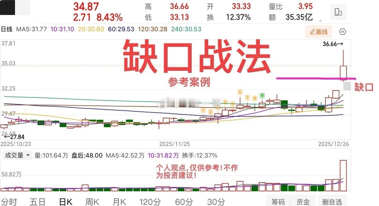 2025.12.28周日(下周策略): 关键点还是3936。 上证指数八连阳,最高点3977,距离4000点也不远了,周五盘中有波小跳水,但总体结构并无破坏,关键点还是3936,不破那么沿着5日线的趋势有望延续,若跌破3936那么将进入震荡,强势的震荡保持10/20日线上方横盘整理,只是时间上可能要长一些,但拉回还是当作机会看待。 板块上,商业航天反复活跃,需要注意的是短线大概率要走震荡分化,最简单的逻辑,日线上实体阳线逐步变小,说明向上的动能在逐步减弱。但走势并未破坏,只是短线需要震荡消化,最简单的以5日线为参考跟踪,不破则趋势延续。板块指数是一方面,重点还是把握板块内部个股的机会,注意内部高切低,选择低位有放大量资金介入的个股进行跟踪。 大消费依旧可以关注,周末消息面:明年财政将大力提振消费。深入实施提振消费专项行动,继续安排资金支持消费品以旧换新,调整优化补贴范围和标准。以零售为例,走势还是强势的结构,回调过程中,可以跟踪底部放量大涨过,缩量回调的个股“百”字龙头不能追。 另外,交易战法《缺口战法》、《试盘线》、《形态突破》行情好的时候可持续挖掘,比如缺口战法⬇️,非常简单易懂! 突破性缺口一般来说,短期内不会回补,所以回踩只要能够确认的住,那么后续就有望走出来,图1所示(不能追),回踩确认缺口支撑,那么就有可能走出来。反之,确认不住怎么办?回补则弱呀,那么,进攻转防守,这也是一种交易方法。 喜欢交易战法,看“我的关注” 关注每个交易日开盘15分钟早评! 个人观点,仅供参考!不作为投资建议!a股今日看盘股票
