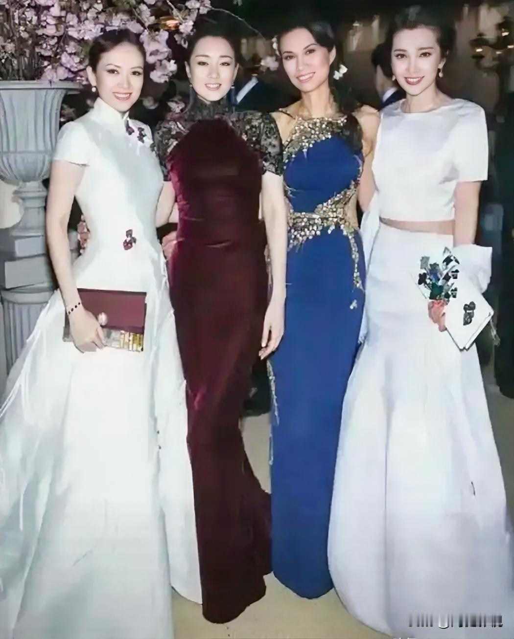 仔细看,左一的是细眉飞扬的章子怡,左二的是秀韵多姿的巩俐,最右边的是明眸善睐的李冰冰,而右二的美女是谁?温婉如莲,秀韵多姿!能与章子怡、巩俐、李冰冰合影真是不简单!她也是演员吗?有谁认识她?