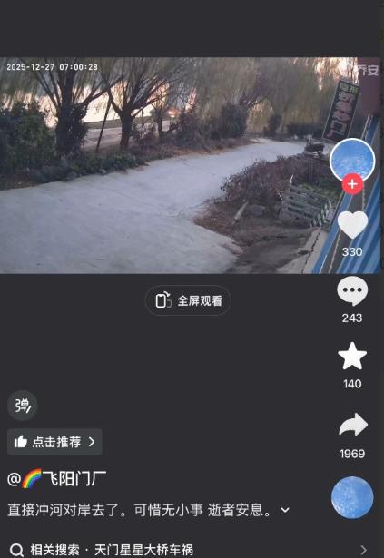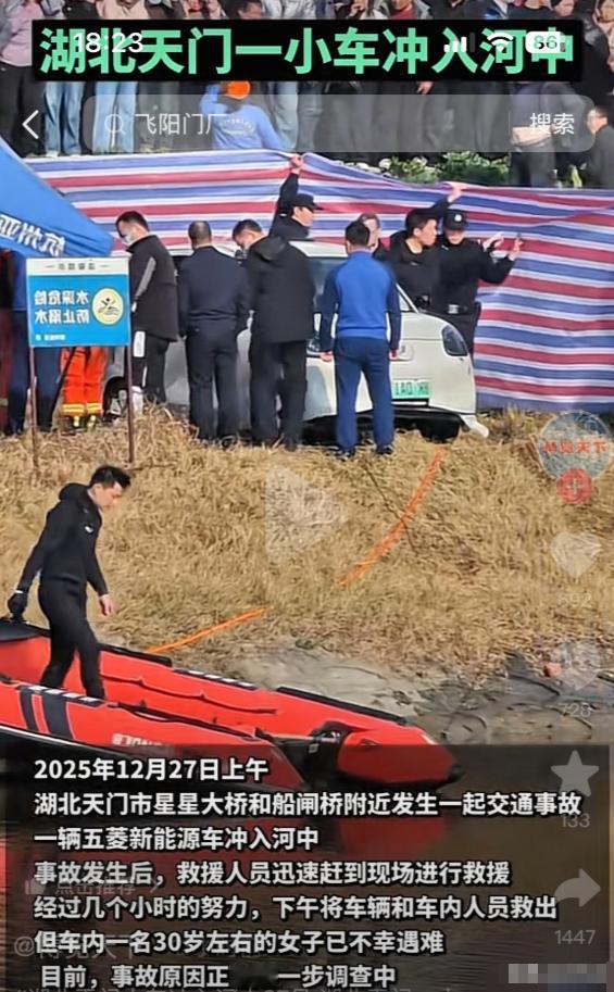 湖北天门,冲入河中的新能源女车主才26岁,她刚拿驾照不久,准备驾驶小车去上班的。没想到,还在半路上,人就出事了。 12月27日,湖北天门的清晨还笼罩在微光之中,一场突如其来的悲剧打破了周末的宁静。 一名99年出生的26岁女子,驾驶着新买不久的新能源汽车前往单位上班,却再也没能抵达目的地。 天门市公安局在12月28日晚发布的警情通报中明确,当天上午7时许,接官路附近发生一起车辆落水事件,公安机关接警后迅速联合消防部门开展打捞搜救工作,下午两点多,落水车辆被成功打捞上岸,但车内女驾驶员已无生命体征,事故原因仍在进一步调查中。 梳理整个事件脉络,这位刚拿到驾照不久的新手司机,事发前一天还专门花了一整天时间练车,自认已经具备独立上路能力,才选择在清晨独自驾车出行。 事发地点位于星星大桥与船闸桥附近,这里的道路与河道之间并非直接相邻,而是隔着绿化带、数米宽的人行步道以及河边护坡,三重缓冲区域本应构成足够的安全屏障。 周边居民家的监控完整记录下了令人揪心的全过程:车辆从马路上冲出后,毫无停顿地越过绿化带,穿过人行步道,翻过护坡,最终一头扎进河水中,整个过程流畅得令人心碎。 更值得注意的是,监控画面显示,从车辆偏离车道到坠入河中,车尾的大灯始终保持亮起状态,这一细节清晰表明,驾驶员在整个过程中可能从未踩下过刹车踏板,也没有做出任何规避方向的动作。 有细心的网友发现,就在事发第二天,南通一名38岁女司机也发生了驾车坠河身亡的事故,两起相似的悲剧让大家对新手驾驶安全的担忧愈发强烈。 多数网友根据天门这起事故的细节推测,女司机大概率是因为突发状况过于紧张,误将油门当成了刹车,才导致车辆失控冲入河中。 还有网友理性指出,这一事件再次证明,并非每个人都适合驾驶,新手司机必须在空旷路面充分练习,打磨好技术和心态后再上路,否则不仅可能危及自身,还可能连累他人,也有网友略带调侃地感叹,或许水陆两栖车会因此受到关注。 复盘这起令人痛心的事故不难发现,这位26岁的女子其实曾有两次宝贵的逃生机会,这也是最让人扼腕叹息的地方。 第一次机会出现在车辆刚冲出马路的瞬间,当时前方有绿化带、步道和护坡构成的充足缓冲空间,只要她能保持冷静,准确分辨油门和刹车,哪怕只是轻轻点一下制动踏板,或者稍微调整一下方向盘,都能大概率避免车辆坠入河中。 第二次机会则在车辆入水前后,如果她能在落水前的几秒钟内迅速打开车窗,或者车内配备了安全锤,能在车辆完全沉没前砸破车窗逃生,结局或许就会截然不同。 可惜的是,新手面对突发状况的慌乱心态,让她错失了这两次生机。 这起悲剧也让我们不得不正视新手驾驶背后的风险根源。 如今,越来越多的新手选择新能源汽车作为代步工具,但新能源车加速比传统燃油车更为迅猛,这无疑对新手的反应能力提出了更高要求,也会进一步放大操作失误的后果。 更关键的是,很多新手容易陷入一个认知误区,将“会开车”和“开好车”混为一谈,误以为拿到驾照就等于具备了独立上路的能力,却忽视了实际道路经验的积累和应急心态的打磨。 事实上,考驾照只是驾驶的入门,真正的驾驶能力,需要在复杂的道路环境中慢慢沉淀,更需要培养遇事不慌、胆大心细的心态。 26岁,本是人生刚刚展开的美好阶段,却在一个寒冷的清晨戛然而止,这背后是一个家庭无法承受的悲痛。 对于每一位准备上路或刚上路的新手而言,这起悲剧都是一次深刻的警示。 驾驶从来不是一件可以“赶进度”的事情,老司机的每一句叮嘱,都是用过往的教训换来的经验,值得认真倾听。 在空旷路面多花点时间练习,熟练掌握车辆操作,打磨好应急心态,才是对自己和他人生命安全最基本的负责。 毕竟,每一次上路,安全都应该是唯一的目的地。 今天的分享到这里就结束了,大家对此事有何看法,欢迎在评论区留言和讨论,感兴趣的可以点击头像加关注,我将每日更新优质内容,我们下期见。