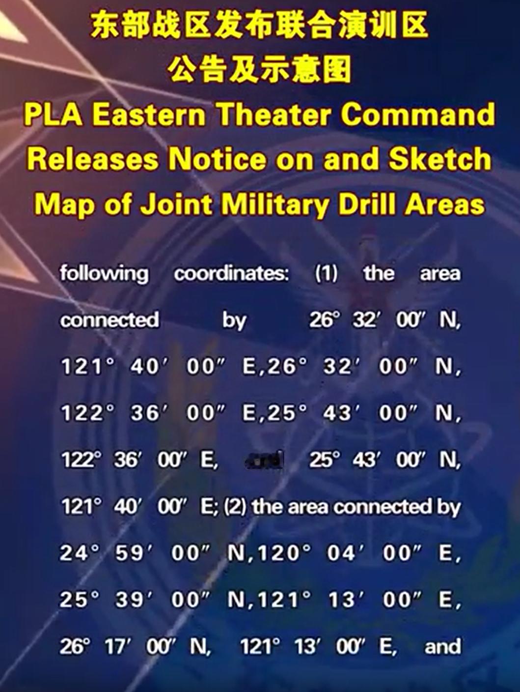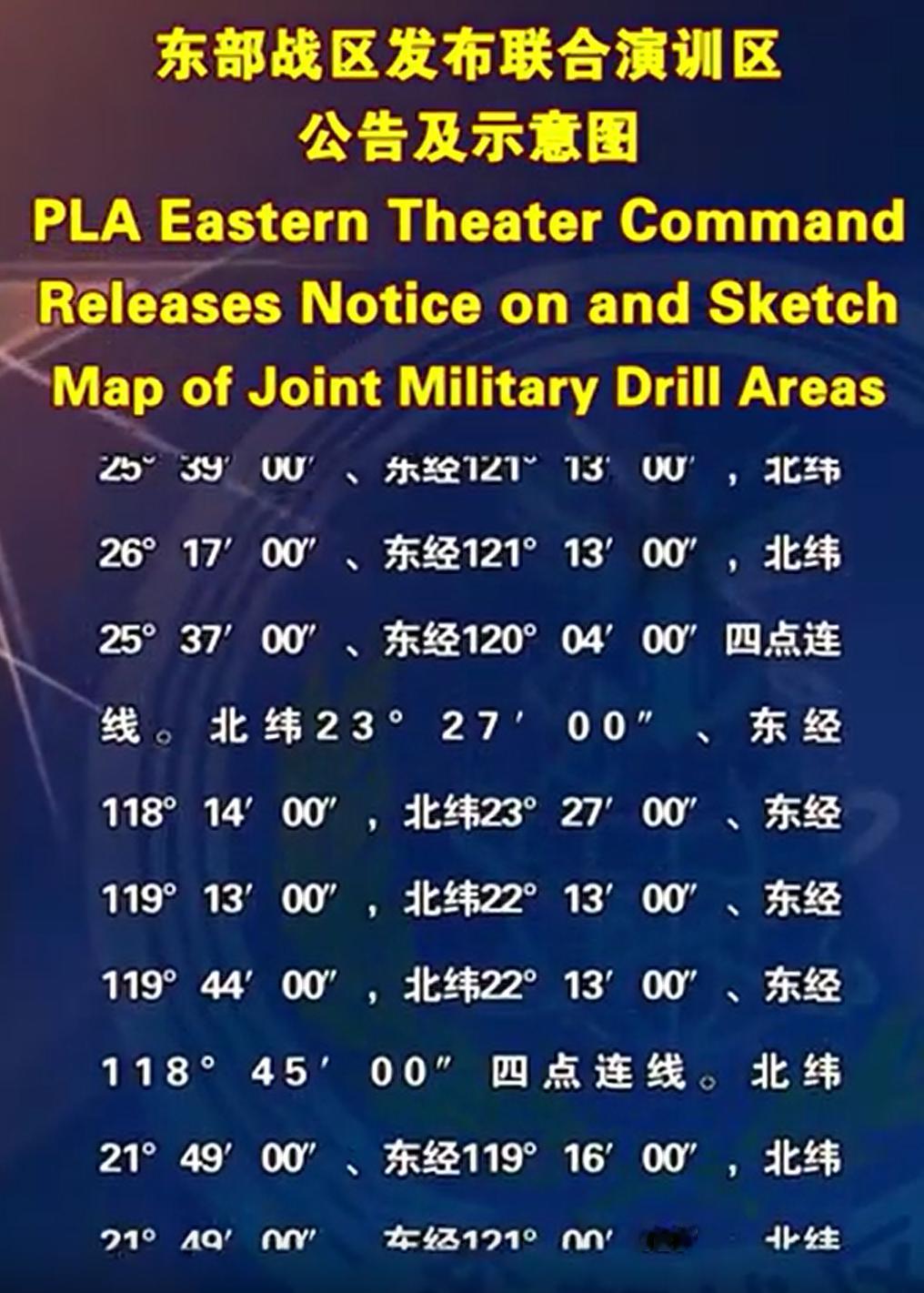 太多细节: 1、东部战区发言人,身着作训服公布演习情况。 2、中英文发布演习区域。 3、周一(29日)早上,发布周二(30日)的演习。 4、实兵实弹演习。 5、五大演习区域,围住台岛,西部留出大片空间,可能是用于无人机作战。 30号演习,会不会假戏真做,31号就宣布解放,以后解放日跟元旦,一起连休5天。 至少休四天。