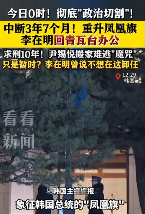 韩国这两天的政坛戏比咱刷的短视频剧情还上头,今天首尔青瓦台那面代表总统的凤凰旗,时隔3年7个月又重新升起来了,现任总统李在明带着团队,今儿起正式回这儿上班了。 这事儿得掰扯下,3年前尹锡悦当总统时,嫌青瓦台太有“帝王味儿”,硬把总统府挪到了龙山。 结果龙山那地方不光办公室挤得转不开身,安保还总掉链子,李在明今年6月一上任就琢磨着搬回来,花了小半年拾掇青瓦台,今天总算把旗子挂上了,就是暂时还住不了青瓦台的官邸,得先在汉南洞凑活几天。 这边青瓦台刚热乎起来,那边尹锡悦的事儿更炸,12月26号首尔法院审他案子的时候,查他的特检组直接建议给他判10年牢。 为啥?去年12月他搞紧急戒严那阵,干了拦着抓人、乱使权力、造假文件这些事儿。 要知道,尹锡悦可是韩国头一个被起诉的现任总统,今年4月已经被弹劾下台了。 这次10年的量刑建议,还只是他身上四件案子里的一件,后面还有更严重的事儿等着审,一审结果得等明年1月16号才出。 其实这两天的事儿就是俩事儿,一是青瓦台重新成了总统的“主场”,韩国政坛算是换了个新台子,二是前总统的烂事儿,司法那边又往前推了一步。 说到底,这波动静明明白白,韩国政坛这波“新旧洗牌”是真彻底, 旧的烂摊子有人收拾,新的台子也搭好了,接下来就看这新场子能唱出啥戏了。