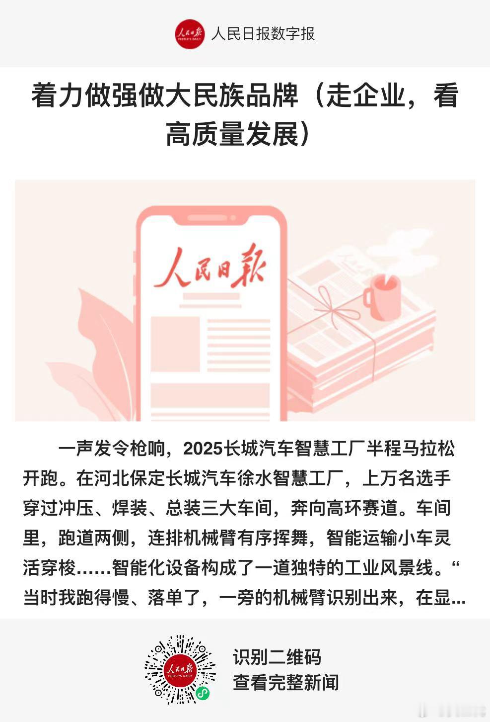 央媒评论版刊登魏建军署名文章2025年,长城汽车的身影屡次出现在《人民日报》的核心版面上,7月头版肯定其自主研发与全球化,8月国际版巴西工厂成为中巴合作典范,再到评论版刊登魏建军董事长署名文章探讨“文化引擎”它传递出一个清晰的信号:长城汽车所坚持的“技术+文化”双轮驱动发展模式,研发实力获得了高度认可。这一切的背后,是对魏建军董事长十年如一日战略定力与长期主义信念的肯定。长城汽车用一次次的“亮相”,诠释了它在中国汽车产业中的价值,不只是车,长城是一个标杆