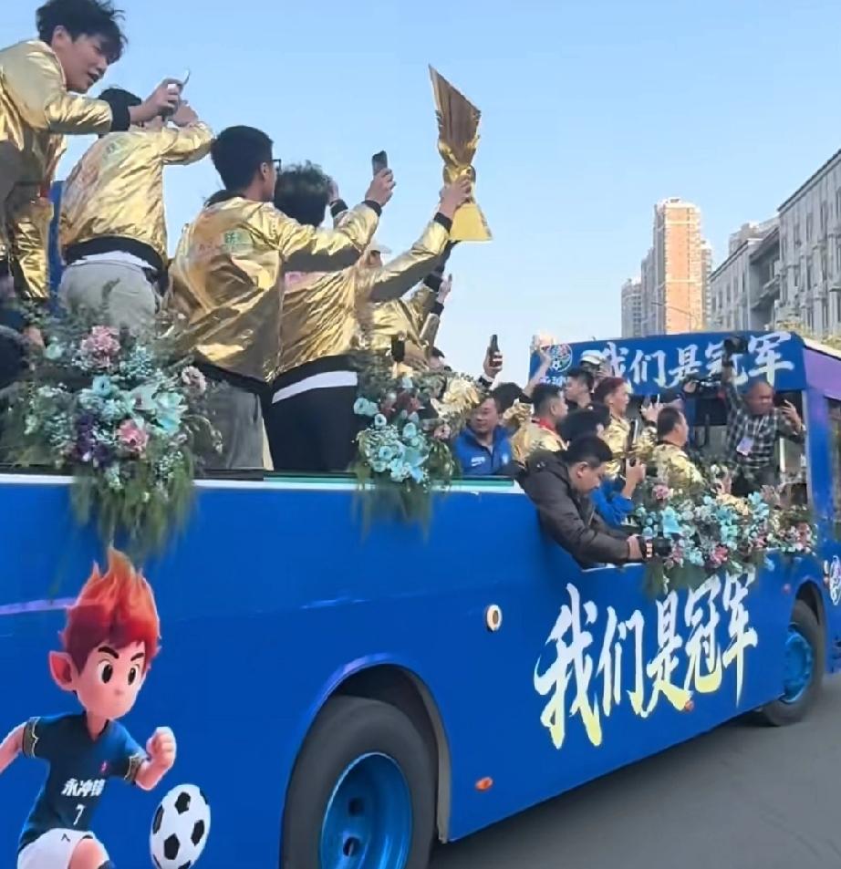 “中国足球还是有希望的!”湘超永州队夺了冠军,当地连夜现杀了一辆公交车装饰成冠军们的巡游车。 真是永州公交站承担了所有,前面是开赛前公交车椅子扒来当体育馆座位,夺冠后还要杀一辆公交车来巡游。[笑哭][笑哭] 真是一场奇迹,谁能想到“告花子”永州队能赢呢!永州小伙子真是太棒了。