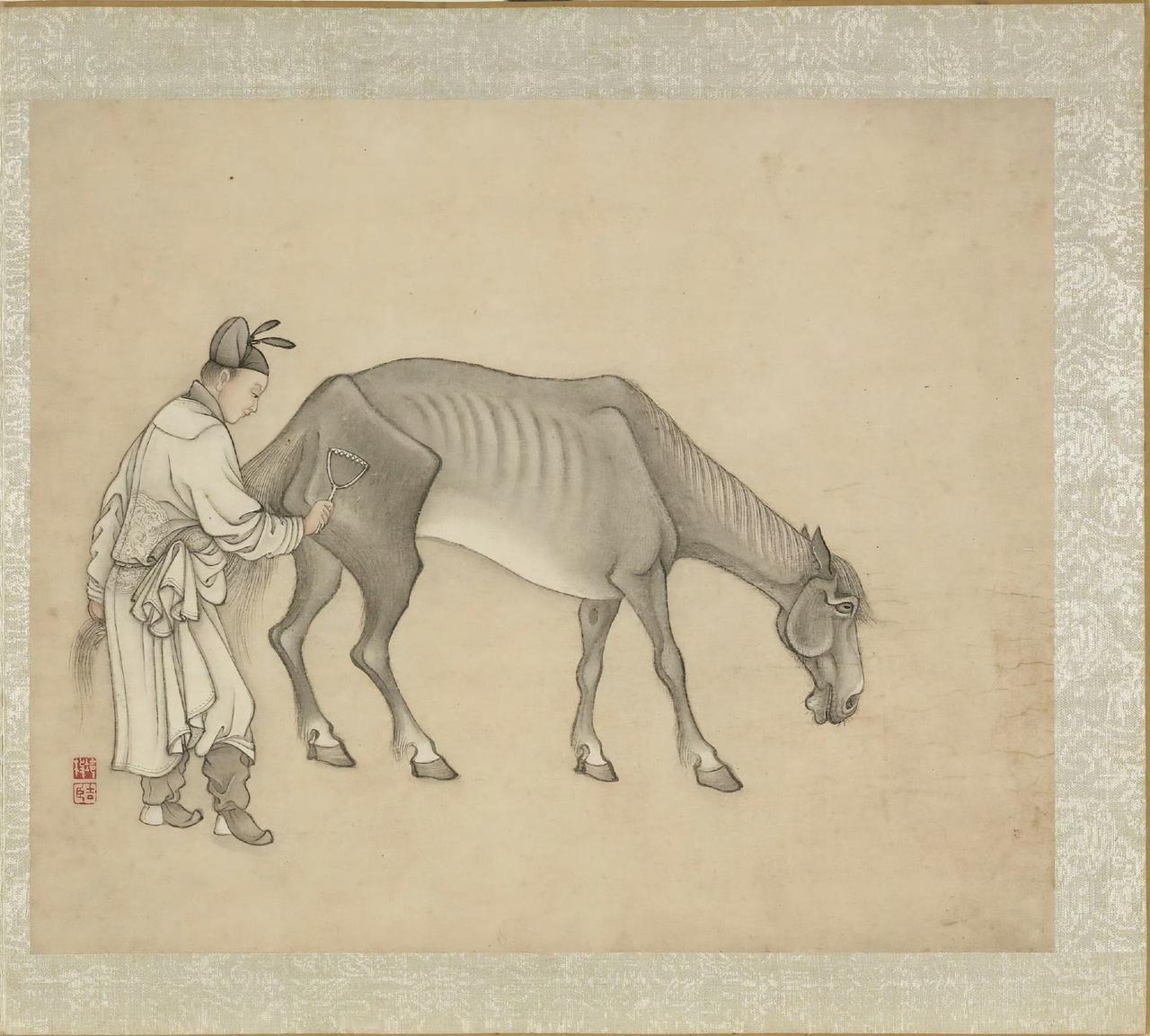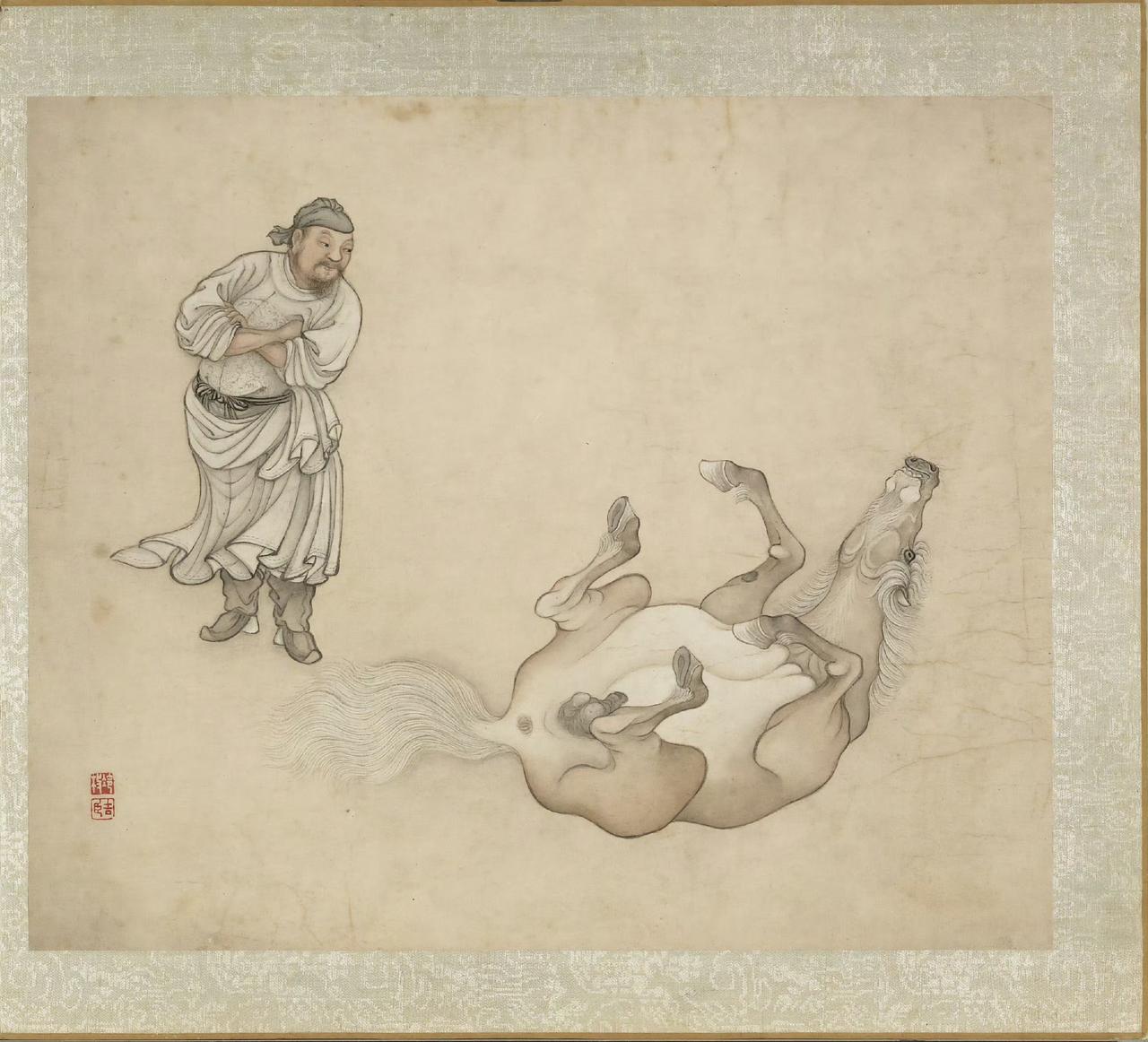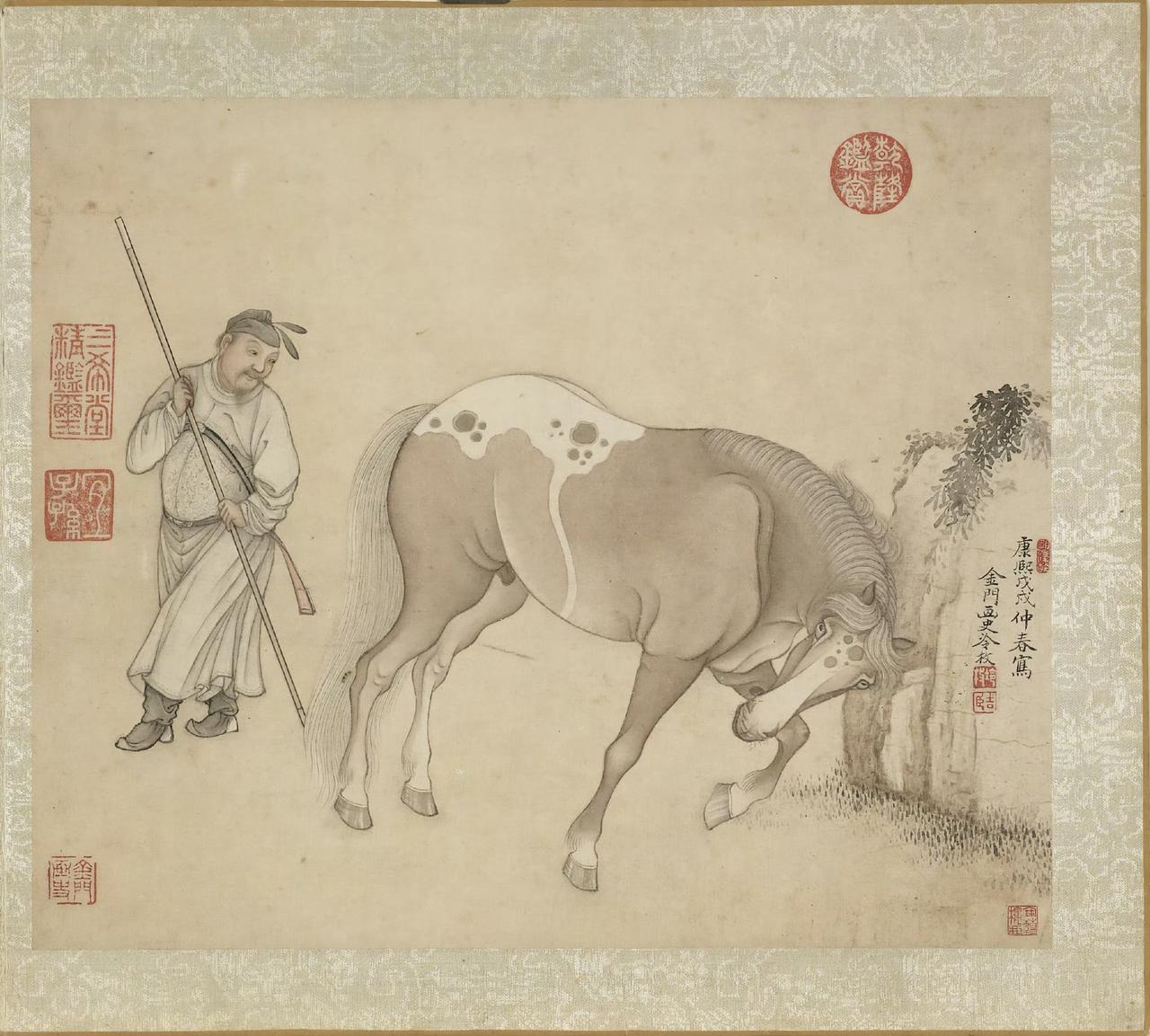 🌹诗词|但使龙城飞将在,不教胡马度阴山——王昌龄的《出塞》: 【释义】倘若龙城的飞将军李广还在,绝不会让匈奴骑兵越过阴山。 王昌龄借战马意象,表达保家卫国的壮志。 🌹赏画|清 ·《冷枚画马》图册 冷枚:清初宫廷画家,擅长画人物、仕女、山水、花鸟,画风工整细致,色彩浓厚。此册八开,呈现马匹动与静的丰富情态。 传统文化 绘画 古诗词