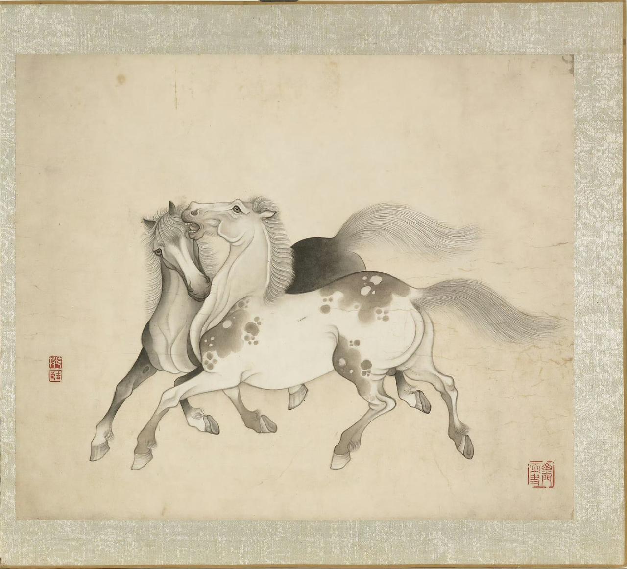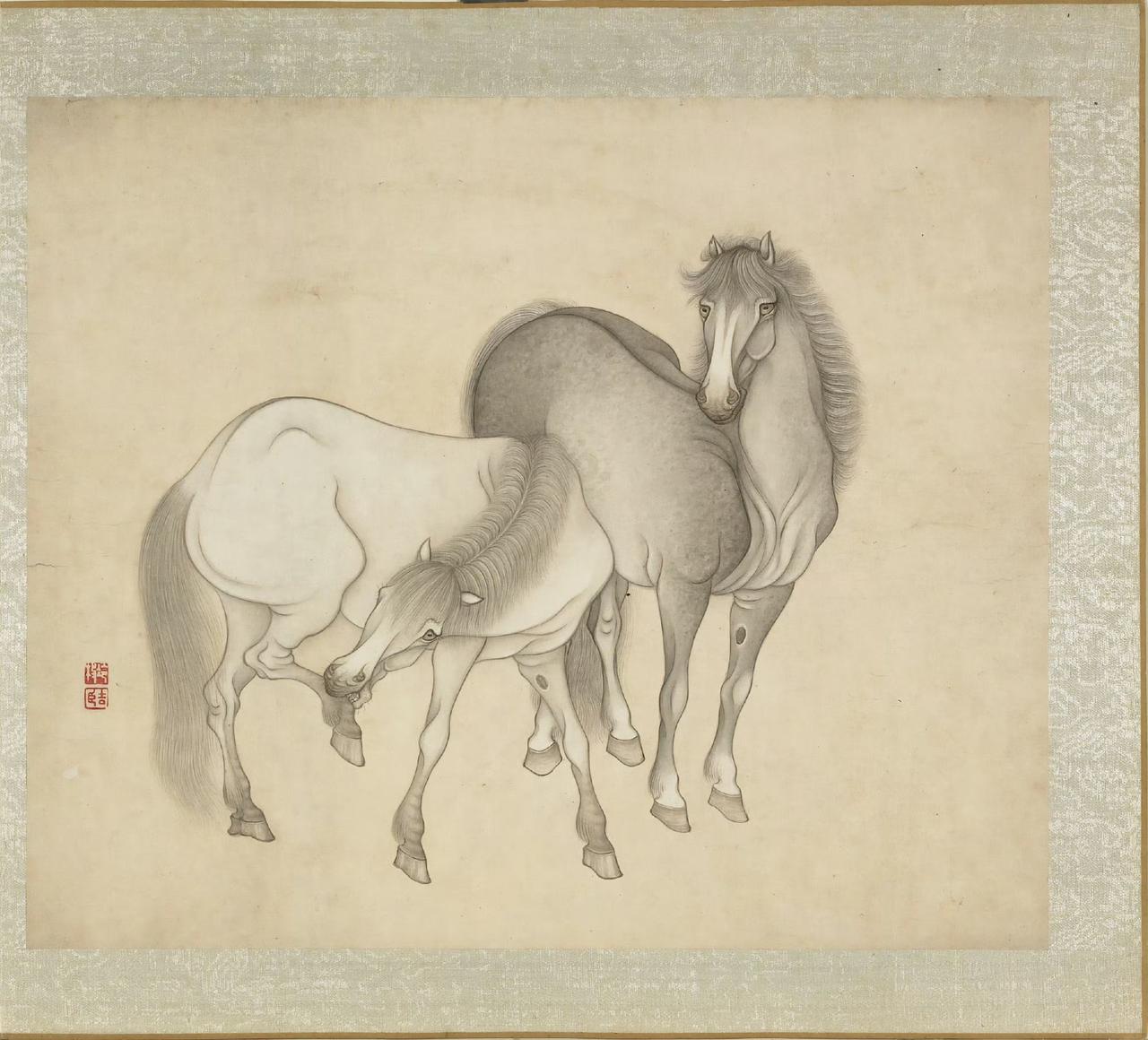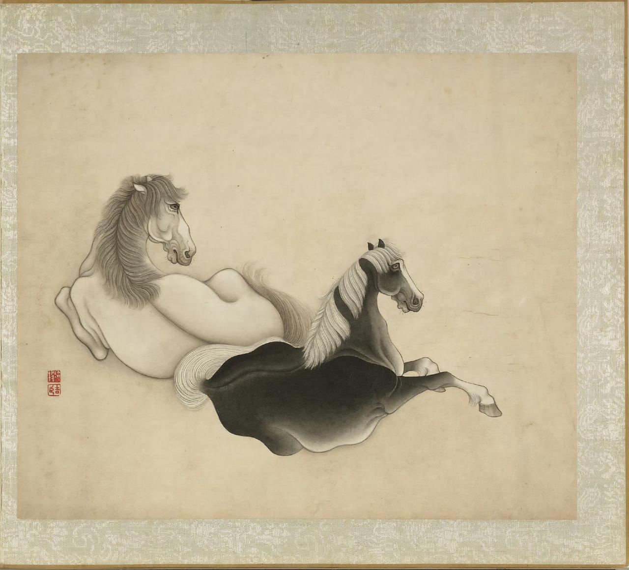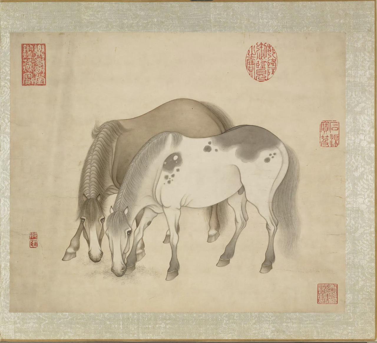 🌹诗词|但使龙城飞将在,不教胡马度阴山——王昌龄的《出塞》: 【释义】倘若龙城的飞将军李广还在,绝不会让匈奴骑兵越过阴山。 王昌龄借战马意象,表达保家卫国的壮志。 🌹赏画|清 ·《冷枚画马》图册 冷枚:清初宫廷画家,擅长画人物、仕女、山水、花鸟,画风工整细致,色彩浓厚。此册八开,呈现马匹动与静的丰富情态。 传统文化 绘画 古诗词