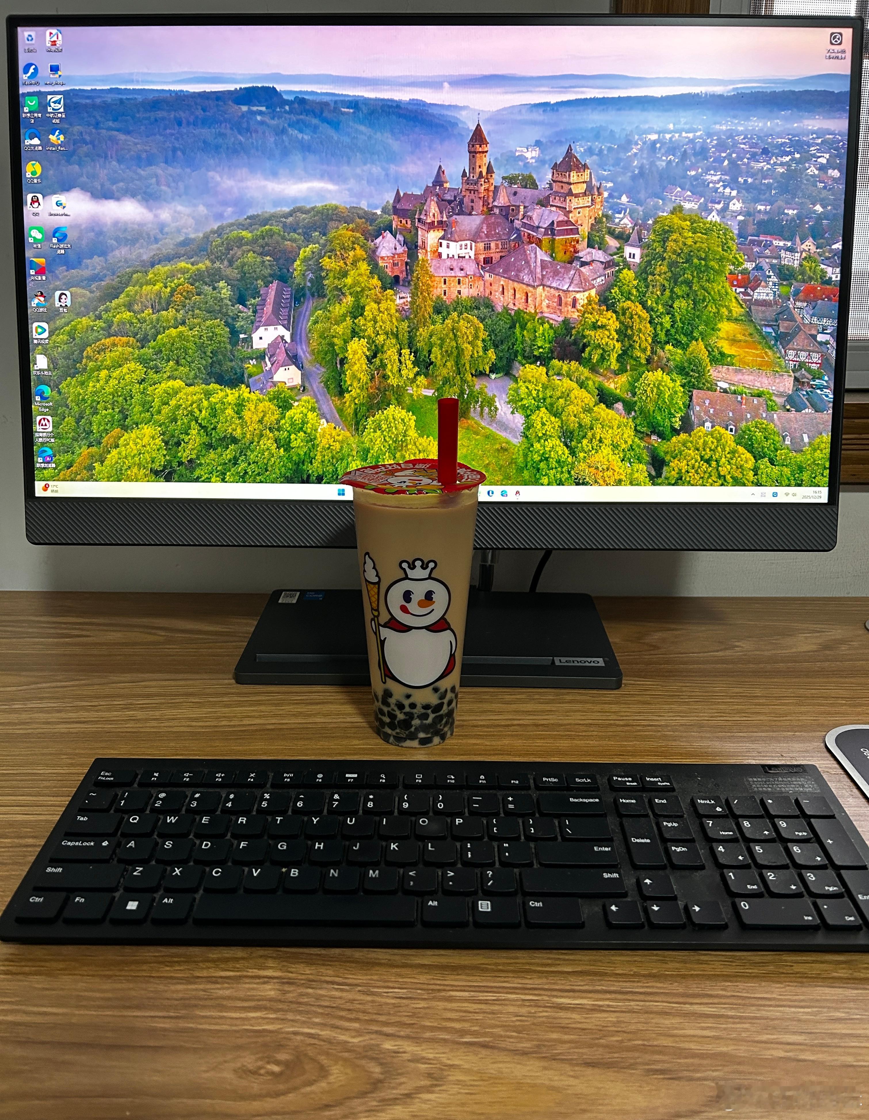 我在喝蜜雪冰城的珍珠奶茶,8元1杯。