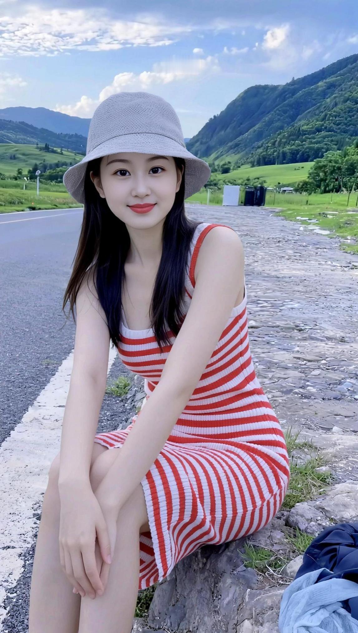 条纹生活照 少女写真 清纯甜美女孩 穿搭 颜值