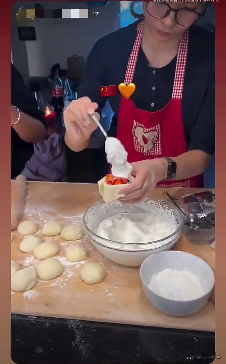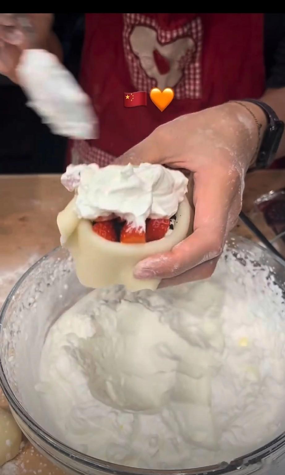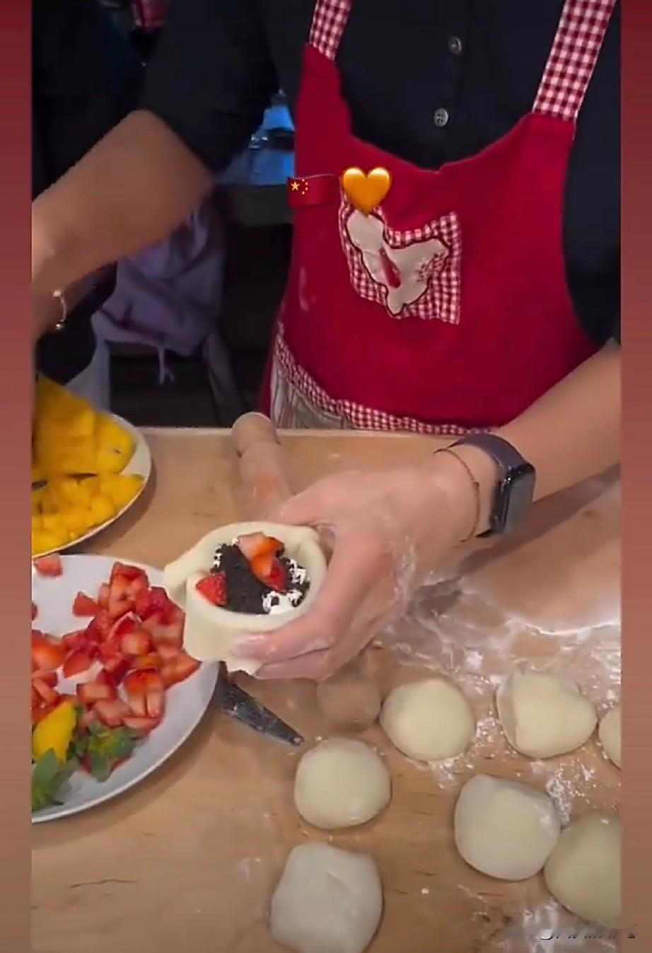 来看看庄宇珊做的“雪媚娘”[呲牙] 瞧,勤快能干的庄宇珊,正向装有奶油和巧克力饼干碎的面皮里添加草莓,接着用雪白的奶油打底,最后捏皮收拢,一个软糯拉丝的雪媚娘就成了。 整套动作,庄宇珊像扣球一般完成得行云流水,非常熟练。朋友,你们吃过雪媚娘吗,一起说说。 南通雪媚娘