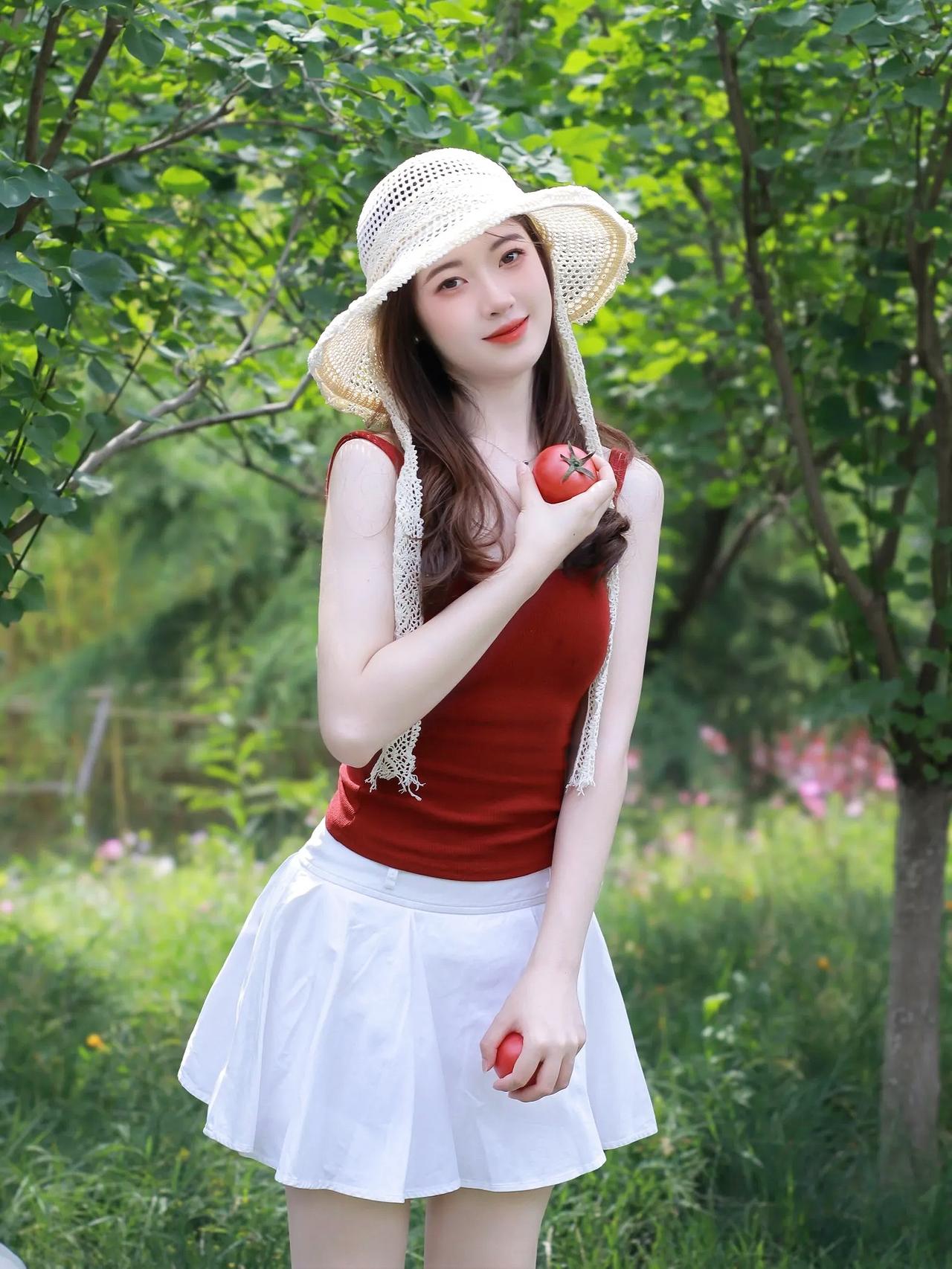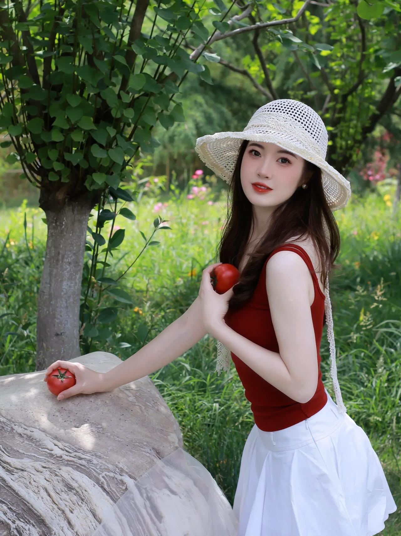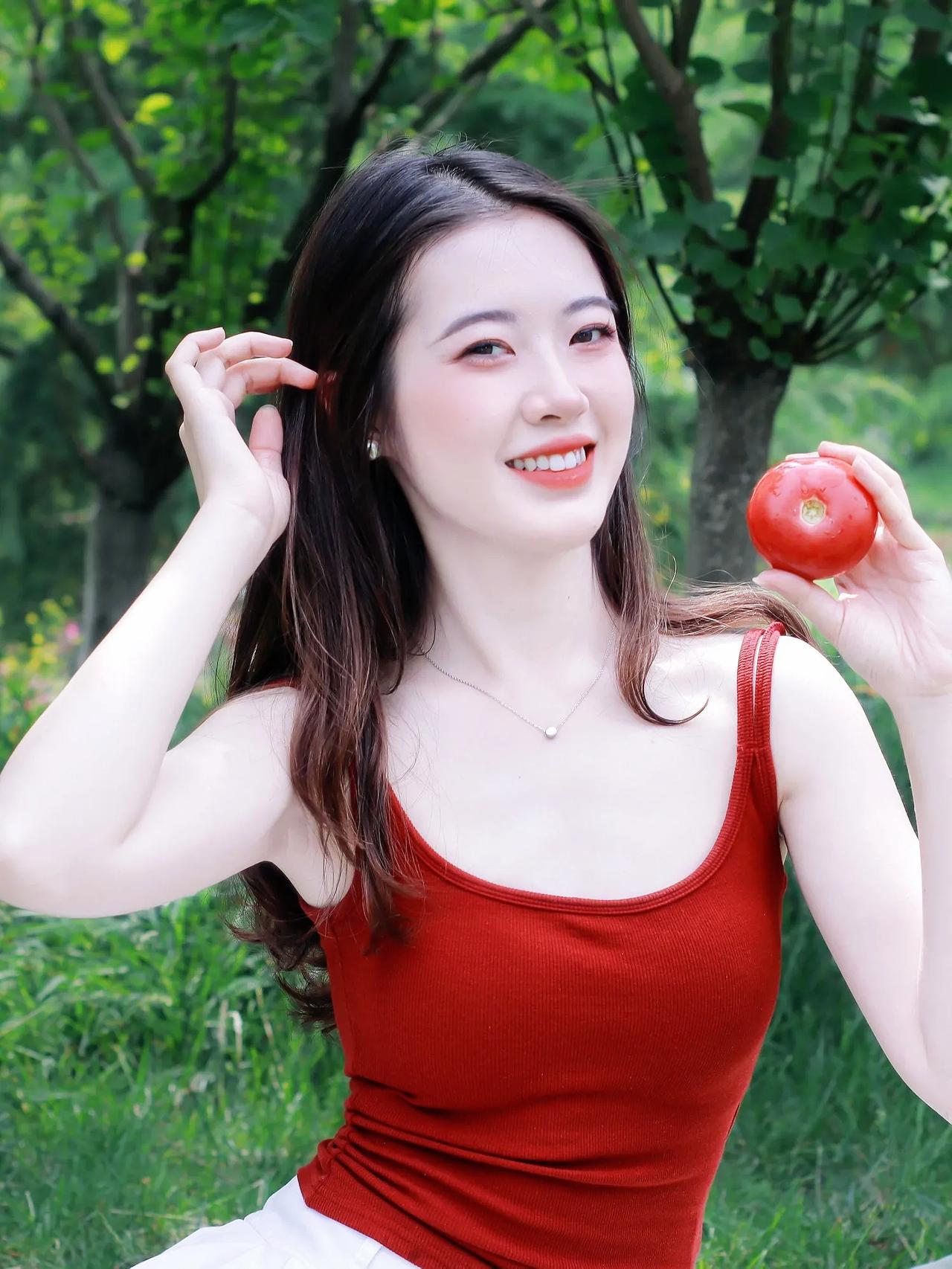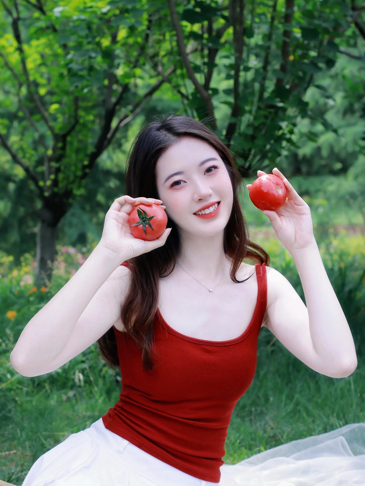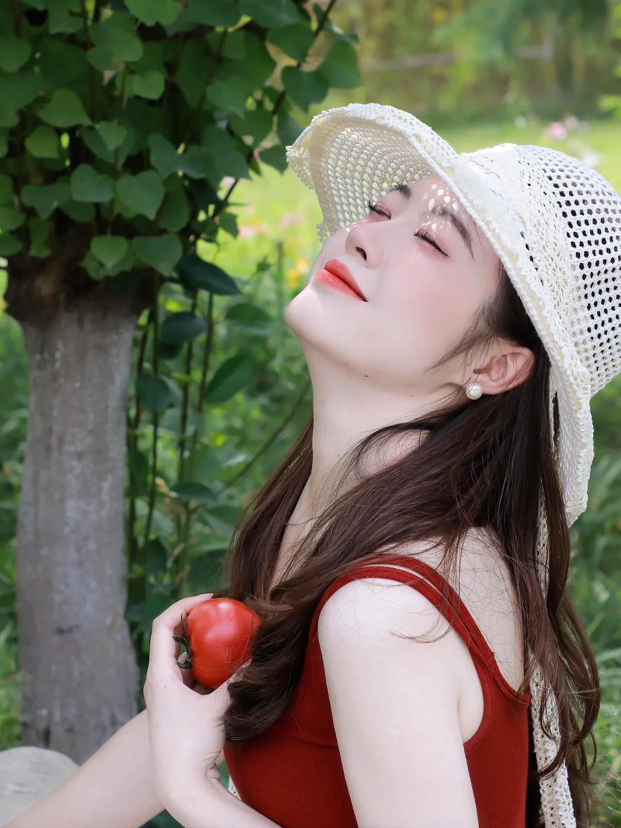 《夏野红柿》原创诗词 原创看图片配诗 绿影摇风蝉语,红衫映日娇妩。 手捻小番茄,笑把暑光轻捕。 凝伫,凝伫,一晌夏情如诉。