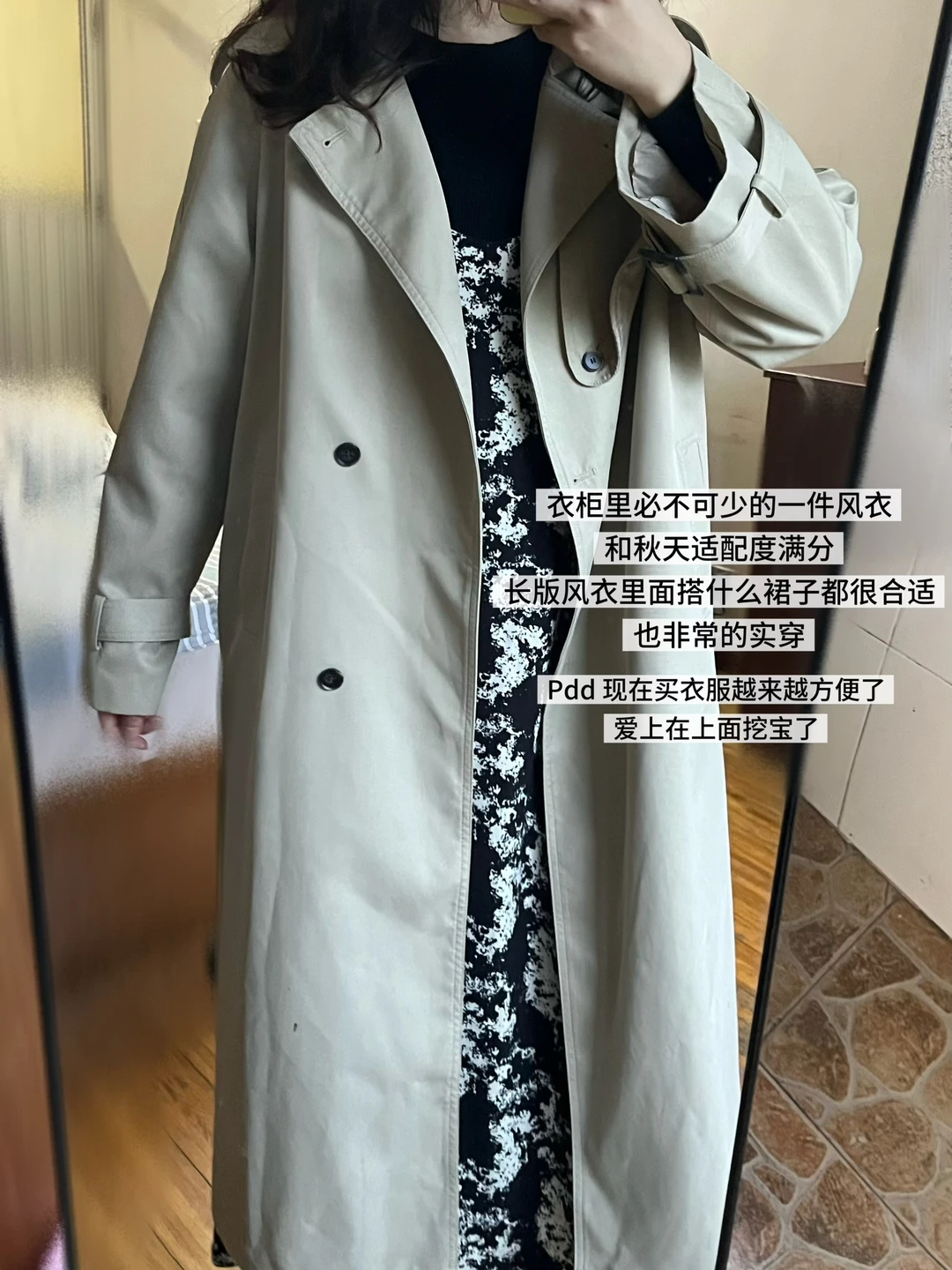 长版风衣里面搭什么裙子都很合适