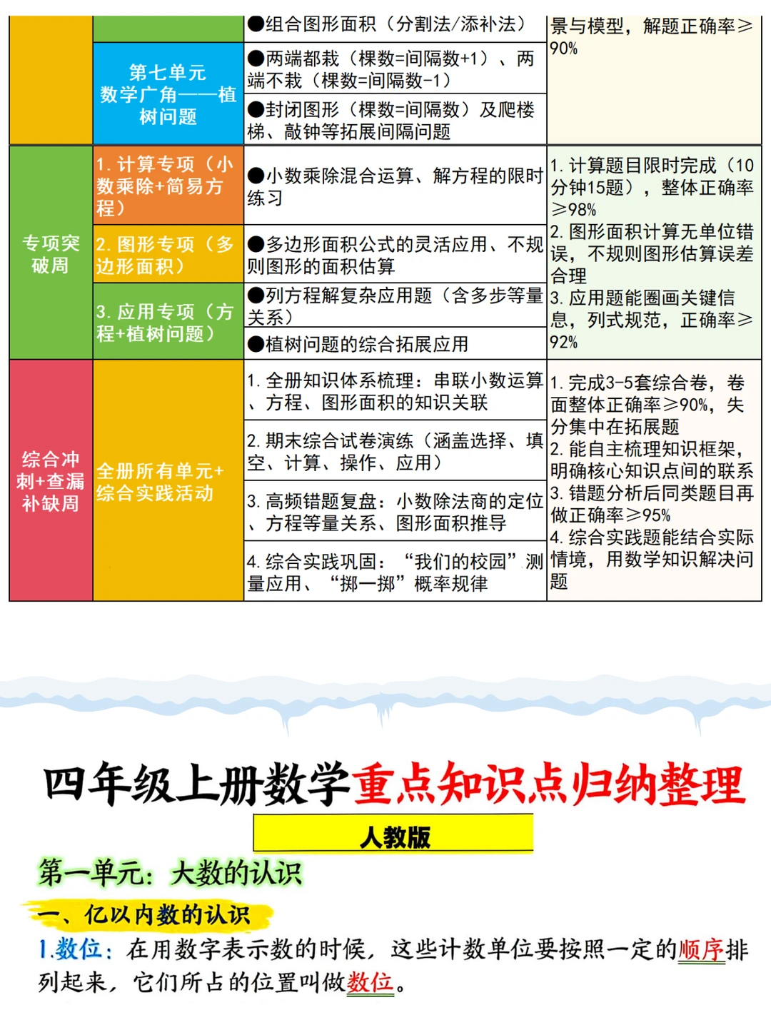 [向右R]宝子们!四年级上册数学期末复习没方向?这份 “计划 + 知识点” 双 buff 的宝藏资料直接抄作业❗