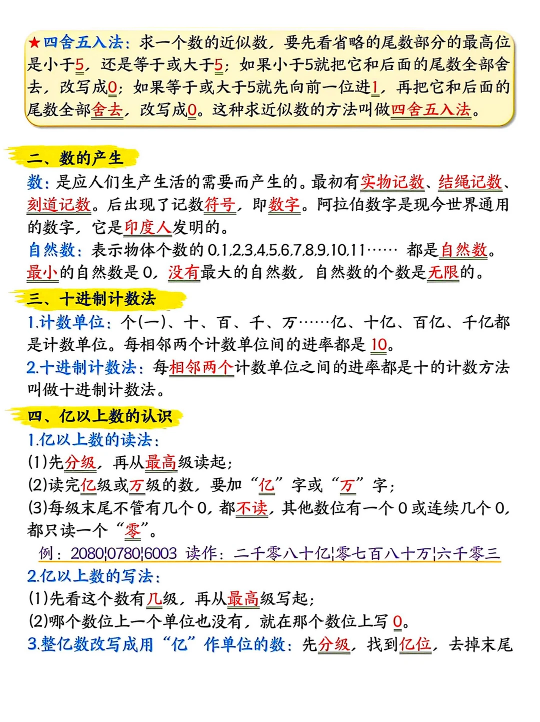 [一R]大数的认识:数级、读写法、四舍五入求近似数,连算盘的用法(一个上珠表示 5)都标清楚了;
