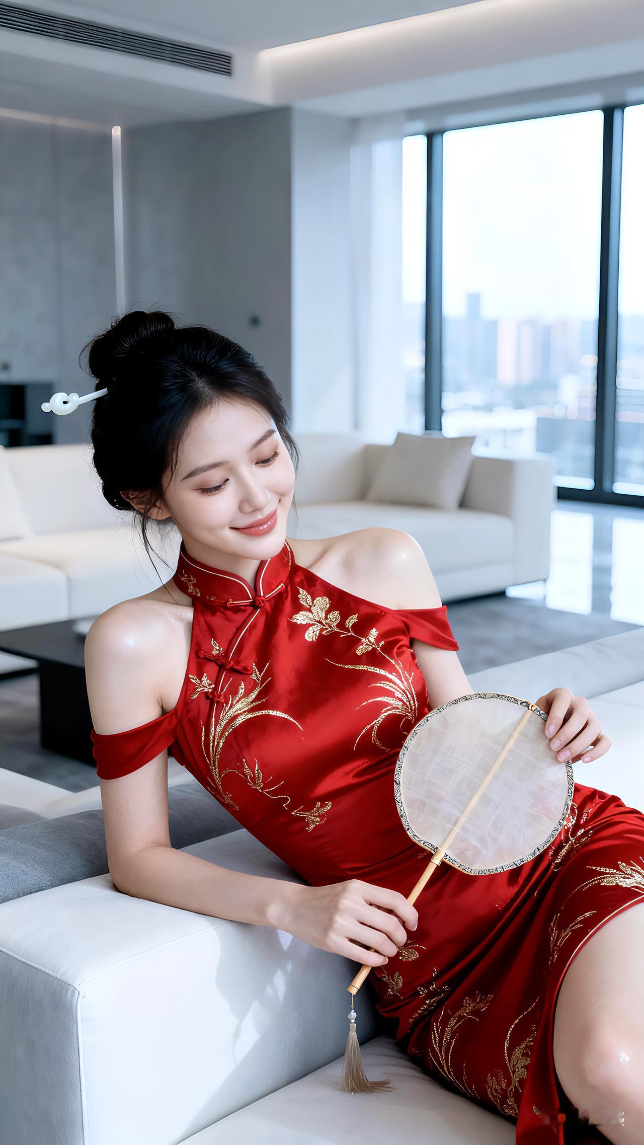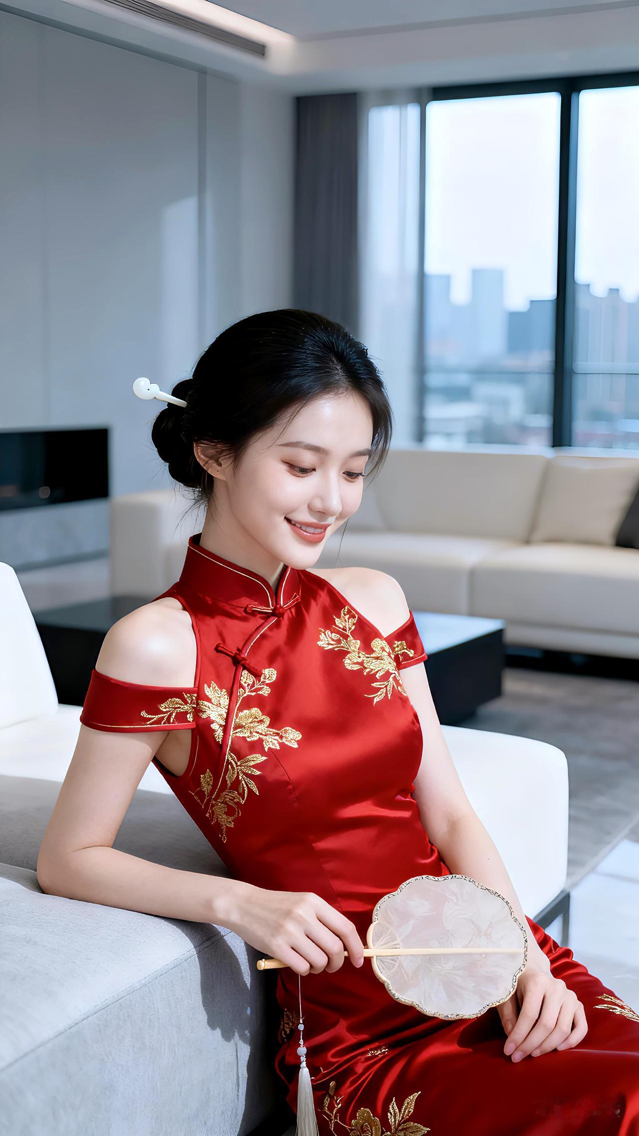 冰肌绰约裁红绢,浅笑盈眸映玉帘。写真 壁纸