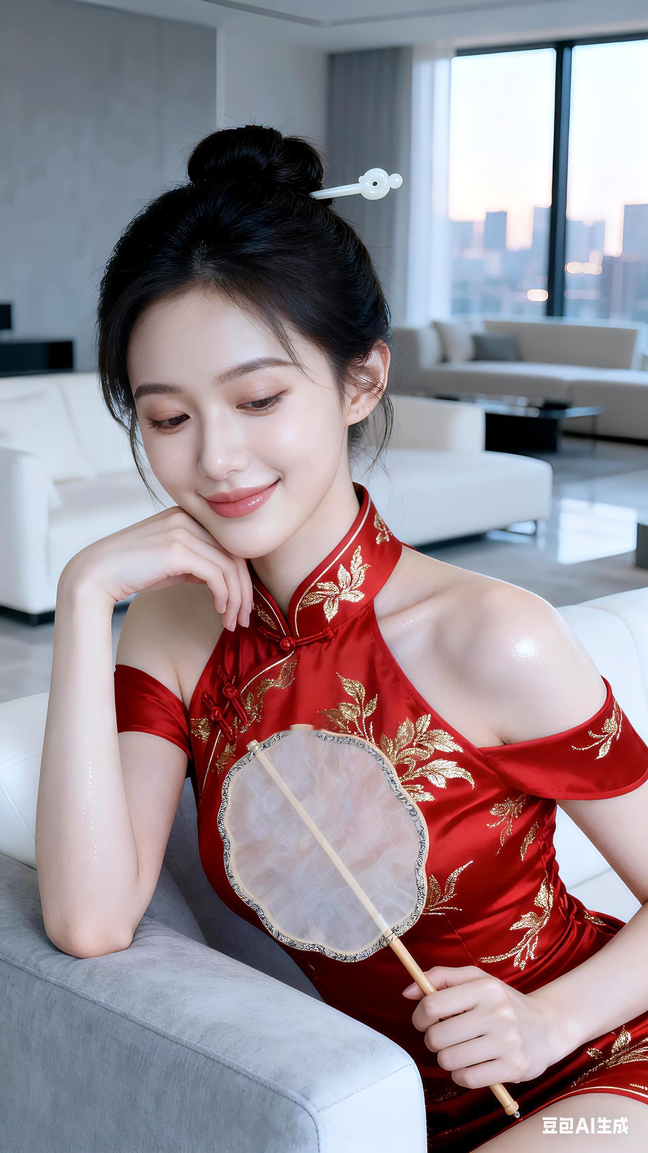 冰肌绰约裁红绢,浅笑盈眸映玉帘。写真壁纸