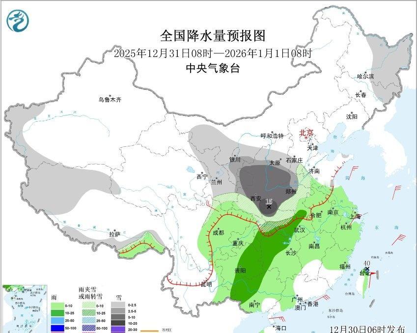 今天下午川渝黔上空浓云密布,部分地区已有雨水飘落,这正是暖湿气流与回流冷空气交汇的体现;随着今晚水汽跨过秦岭进入西北地区,跨年雨雪过程即将全面启动,雨雪区内的朋友出行一定要注意安全!