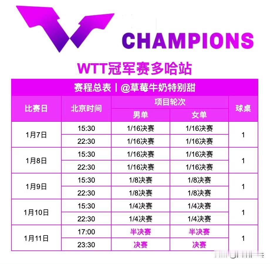 赛事信息 【赛程总表】P2 【中国队参赛名单】 男单 林诗栋、梁靖崑、向鹏、陈垣宇、周启豪 女单 王曼昱、陈幸同、蒯曼、王艺迪、陈熠 【赛事积分】冠军1000分丨亚军700分丨四强450分丨八强300分丨十六强80分丨三十二强15分 【赛制】1/16决赛、1/8决赛 五局三胜制丨1/4决赛、半决赛、决赛 七局四胜制 2025.12.30