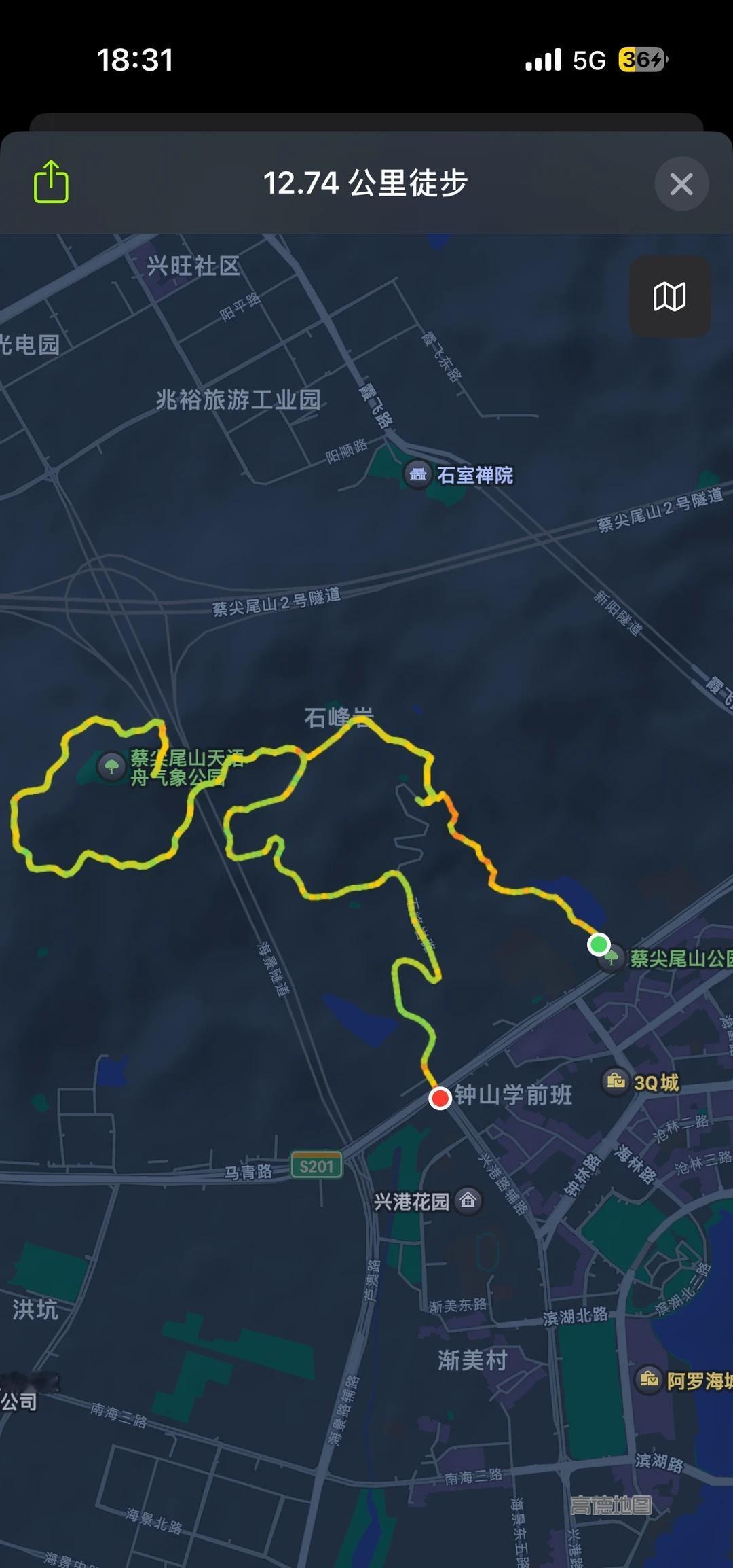 蔡尖尾山公园徒步12.7km 路线导航到蔡尖尾山公园南门-水库-菜园-阶梯-茶室-石峰岩-大路-天语舟气象公园-蔡尖尾山公园服务驿站出-吃晚饭(浦梨) 这个路线前面爬楼梯会比较累,后面都是大路会轻松一点,也可以开车上去的。需要注意看天气天气比较冷风大需要多带一件轻羽绒内胆,这样保暖一点。 物资:水 面包 水果 一双好走的运动鞋每周一山 城市轻徒步 爬山 厦门爬山 一起爬山去