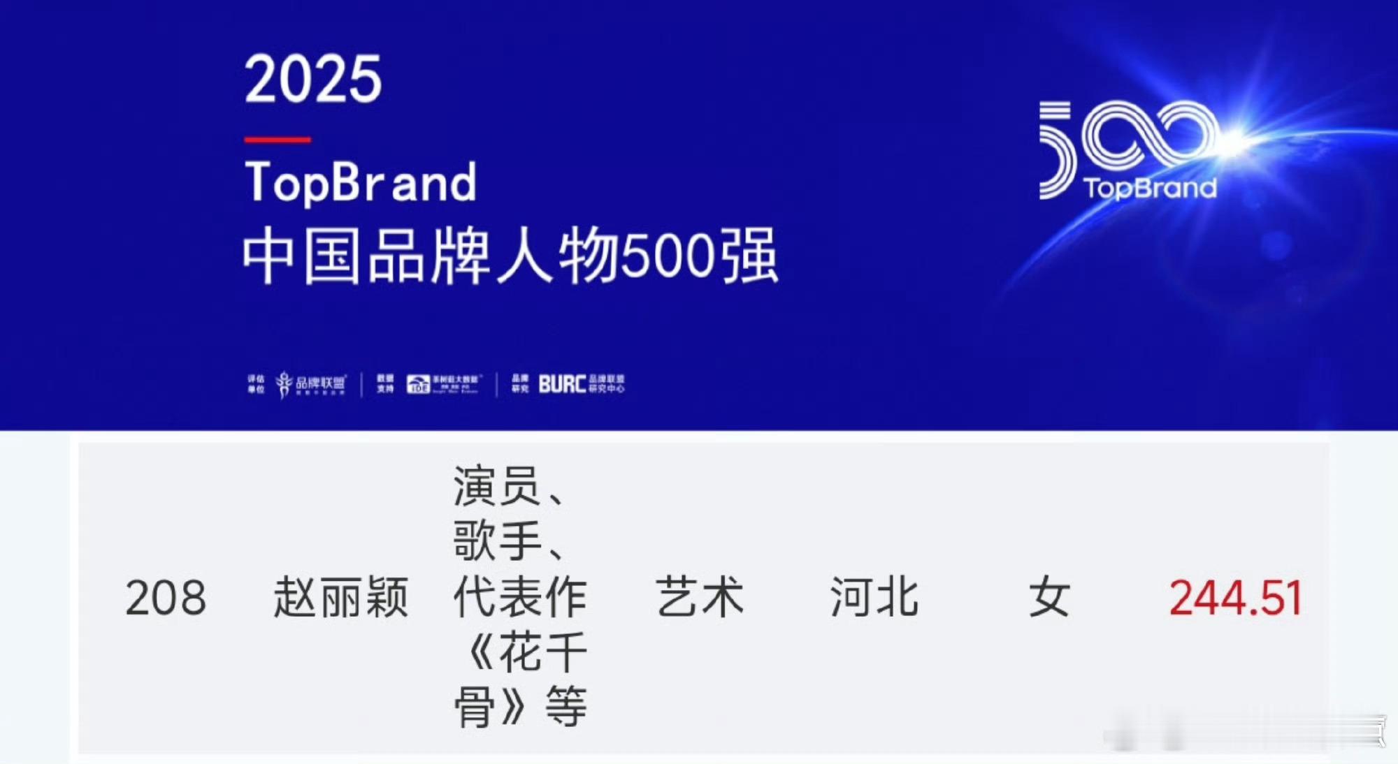 赵丽颖入选中国品牌人物500强 恭喜赵丽颖入选中国品牌人物500强,好牛!赵丽颖入选2025中国品牌人物500强