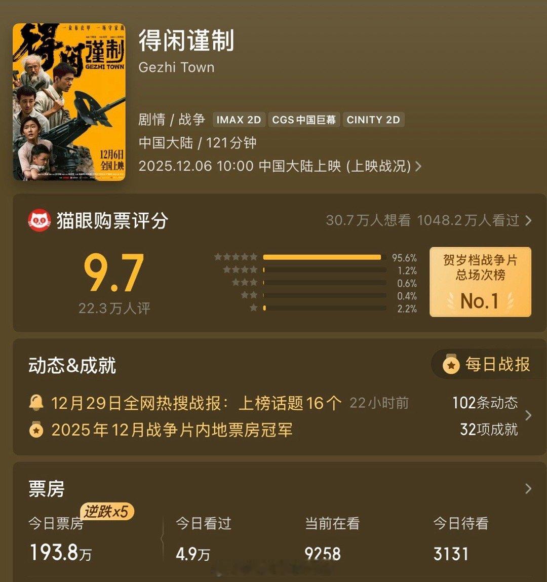 woc,《得闲谨制》今天第五次逆跌之外,总票房预测也突然涨到了3.94亿!这么好的电影希望能有多一点的排片,它潜力太大了! 得闲谨制 得闲谨制第5次票房逆跌