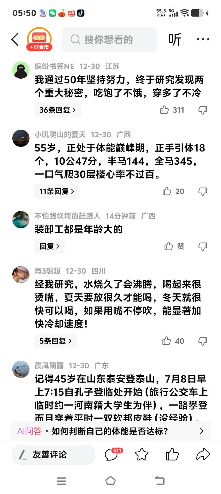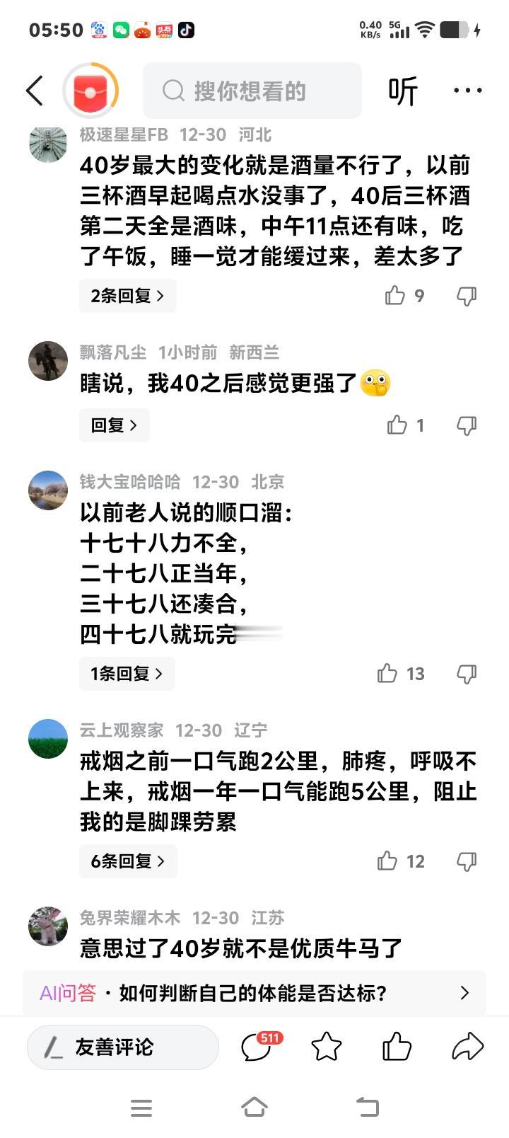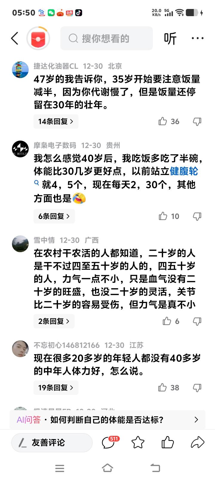 四十岁后身体拉响警报?别慌!杭州这位大叔用亲身经历告诉你:做到这两点,五十岁比三十岁更生猛! 你有没有这样的感觉:年过四十,爬三层楼就喘,周末爬山半途腿软?年轻人熬夜依旧精神,你少睡两小时就昏昏沉沉?这不是错觉——40岁确实是身体机能的一道坎。 但今天,一个颠覆认知的真相是:四十岁后的“断崖式下滑”并非必然! 杭州一位52岁的程序员大叔,用亲身经历打破了“年龄决定论”。他不仅能轻松完成100公斤深蹲,还能周末骑行80公里,体脂率保持在18%,让许多年轻人自愧不如。 他的秘诀是什么?并非昂贵补品或秘密训练,答案简单得惊人。网名“西湖铁人”的大叔说:“四十岁体检,脂肪肝、高血压全来了。从那时起,我只坚持做两件事,三年后,身体状态反而超过了三十岁。” 第一件事:彻底颠覆“运动就是吃苦”。 他不再追求单一运动,而是打造了一套 “四合一”身体维护系统:每周三次,组合进行20分钟快走(心率130左右)、30分钟力量训练(深蹲、卧推等)、10分钟平衡训练、15分钟全身拉伸。这套组合像给身体做全面保养:有氧维持心肺,力量对抗肌肉流失(研究显示,30岁后肌肉每年流失1%,力量训练可逆转),平衡防跌倒,柔韧保灵活。四者缺一不可。 更关键的是,他将运动融入生活:骑车通勤、每小时起身拉伸、看电视时做靠墙静蹲。“我不把运动当任务,而是像刷牙洗脸一样的习惯。这样就没有坚持的痛苦,只有不做的别扭。” 第二件事:在“吃”上做精准革命。 他的饮食哲学是:不节食,只优化。早餐保证两个鸡蛋和一杯豆浆;午餐米饭减半、蔬菜加倍;晚餐必有鱼或豆腐。每周还允许自己吃一次最爱的红烧肉——“80%自律+20%放纵” 的模式,让计划可持续三年。 他特别注重蛋白质分配:每餐摄入25-30克蛋白质(如鸡蛋、牛奶、肉类或豆制品),最能刺激肌肉合成。这不仅让他肌肉增长,连脂肪肝也消失了。 改变后,他收获的远不止身体变化: 工作效率提高(下午不再困倦),情绪更稳定(运动释放内啡肽),人际关系改善(在健身房结识朋友,骑行成社交乐趣)。他的故事并非个例——北京“大爷篮球队”、上海外滩练瑜伽的阿姨们,都在证明:中年后的身体,是用来“维护”的,而非“消耗”。 你可能说:“太忙,没时间!”但“西湖铁人”曾是互联网公司技术总监,加班是常态。他的秘诀是 利用碎片时间:早晨30分钟自重训练、午休快走20分钟、晚上15分钟俯卧撑深蹲。“每天30分钟,一年就是182.5小时。投资健康,比任何理财回报率都高。” 饮食上,若嫌计算麻烦,记住简单原则:每餐一掌蛋白质、一拳主食、两拳蔬菜。烹饪多蒸煮烤,少油炸红烧;多喝水,少喝含糖饮料。小小改变,累积起来效应巨大。 科学研究证实,人的体能巅峰虽在26-36岁,但通过科学训练,四十岁后完全可以打造 第二个“体能高峰” 。那些感觉状态下滑的人,往往不是因为年龄,而是放弃了维护。肌肉不用则废,心肺不练则衰——这是铁律,与年龄无关。 从今天起,忘记“我老了”的自我设限。你的身体是精密机器,只要正确维护,五十岁可以比三十岁更顺畅持久。不必追求成为冠军,只需比昨天多动一点、吃聪明一点。一年后,当你轻松爬楼、体检报告全优、孩子夸你精神好时,你会明白:投资健康,是人生最值得、回报率最高的选择。 四十岁不是终点,而是重启键。按下它,开启一段更从容、更有掌控力的人生。杭州大叔能做到,公园里的大爷大妈能做到,你也一定能——从今天散步30分钟、明天早餐加一个鸡蛋开始。你的身体,正等待你的唤醒。 (来源:大象新闻及综合自《英国医学杂志》研究,中国疾控中心慢病中心指南及多位健身达人真实案例) 中年逆袭 健康投资