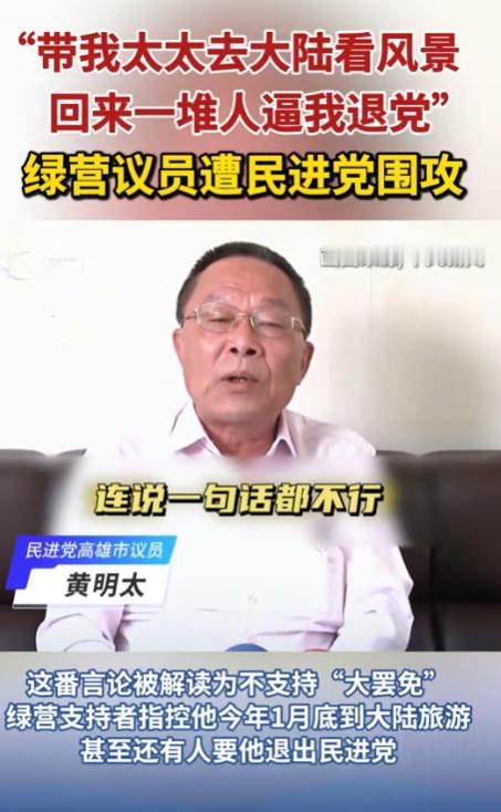台湾民进党员黄明太携夫人到大陆游览风景名胜,结果一回到台湾民进党一群人就逼他退党,说他被“红统”了,他气的大呼“台湾还有民主吗?说句话都不行!”简直是绿色恐怖! 两岸同胞本是一家人,血脉相连,正常往来本该是天经地义的事,台湾民众到大陆旅游、探亲、经商、求学,本来就很普遍,大陆一直敞开大门欢迎大家来体验真实的中国发展成就。 可民进党当局却费尽心机,不断收紧对岛内公职人员和普通民众赴大陆的管制。 就在2025年12月26日,台湾行政机构通过《两岸人民关系条例》部分条文修正草案,将公职人员赴大陆全面改为许可制,甚至把民意代表、退职未满三年的县市长也纳入严格审查范围。 民选公职人员如果接触大陆党政机构,返台后还必须公开个人信息,这哪里是风险管控,分明是把两岸正常交流当成威胁,用行政手段强行阻断同胞往来。 这种做法,不仅针对公职人员,还延伸到普通民众和各界人士。 过去几年,民进党当局以各种名义打压参与两岸交流的团体和个人,比如驱逐在网上表达两岸统一观点的大陆配偶,调查教师或警察因个人言论被举报,甚至封禁大陆网络平台,限制台湾年轻人了解真实大陆。 这些行径,让岛内许多人感到恐惧,担心一不小心就被贴上“亲中”标签,遭受网暴或行政处罚,国民党等多方批评这是“半戒严”手段,旨在制造寒蝉效应,阻挠两岸民间互动。 民进党当局一边高喊“民主自由”,一边却在岛内大搞思想审查,任何与大陆有关的正常活动,都可能被无限上纲上线成“统战渗透”。 台湾民众本该有权自由选择去哪里旅行、接触谁,可现在连退休官员参加两岸活动都要被禁止,违者剥夺退休金或重罚。 远见杂志民调显示,超过五成台湾民众担忧两岸短期内开战,却有六成多不愿自己或家人上战场,这反映出大家对和平交流的渴望,而不是对抗。 可民进党当局无视民意,一味升高紧张,只会让台湾社会更撕裂,经济更受损。 大陆经济发展迅猛,基础设施完善,文化旅游资源丰富,许多台湾同胞来大陆后,都感慨祖国变化巨大,生活便利,人民热情,两岸交流本能增进理解、化解误会、促进融合发展。 可民进党当局害怕台湾民众看到真实大陆,害怕大家认识到“台独”才是死路一条,于是用尽手段筑墙设障。 个人认为,民进党这种“绿色恐怖”越演越烈,只会加速失去民心,台湾同胞越来越清醒,看到当局施政无能、经济停滞、民生艰难,却把精力花在内部迫害和外部挑衅上。 两岸统一是大势所趋,任何阻挠交流的图谋都挡不住历史潮流,台湾民众应勇敢反对这种独裁行径,推动正常往来,让两岸早日实现真正融合。 你认为岛内还有多少人敢正常去大陆走走,而不怕被扣帽子? 信息来源:厦门广电