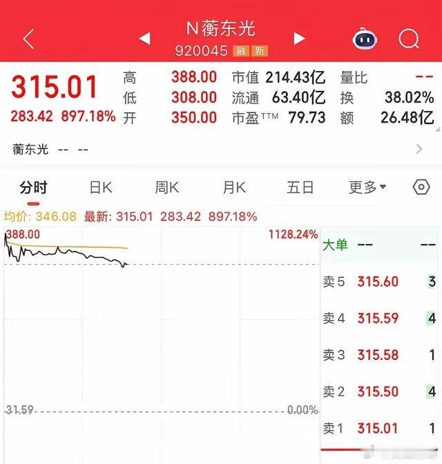 还有高手?北交所新股高开1000%!今天北交所新股N蘅东光上市,首日开盘直接涨超1000%,不仅远超摩尔和沐曦首日涨幅,还创出了A股新股上市首日最高涨幅,中一签相当于翻了10倍!当然以北交所的参与门槛来看,新股上市首日能炒这么高的溢价,大概率还是机构和大资金之间的自娱自乐,估计就等着散户进去接了.....