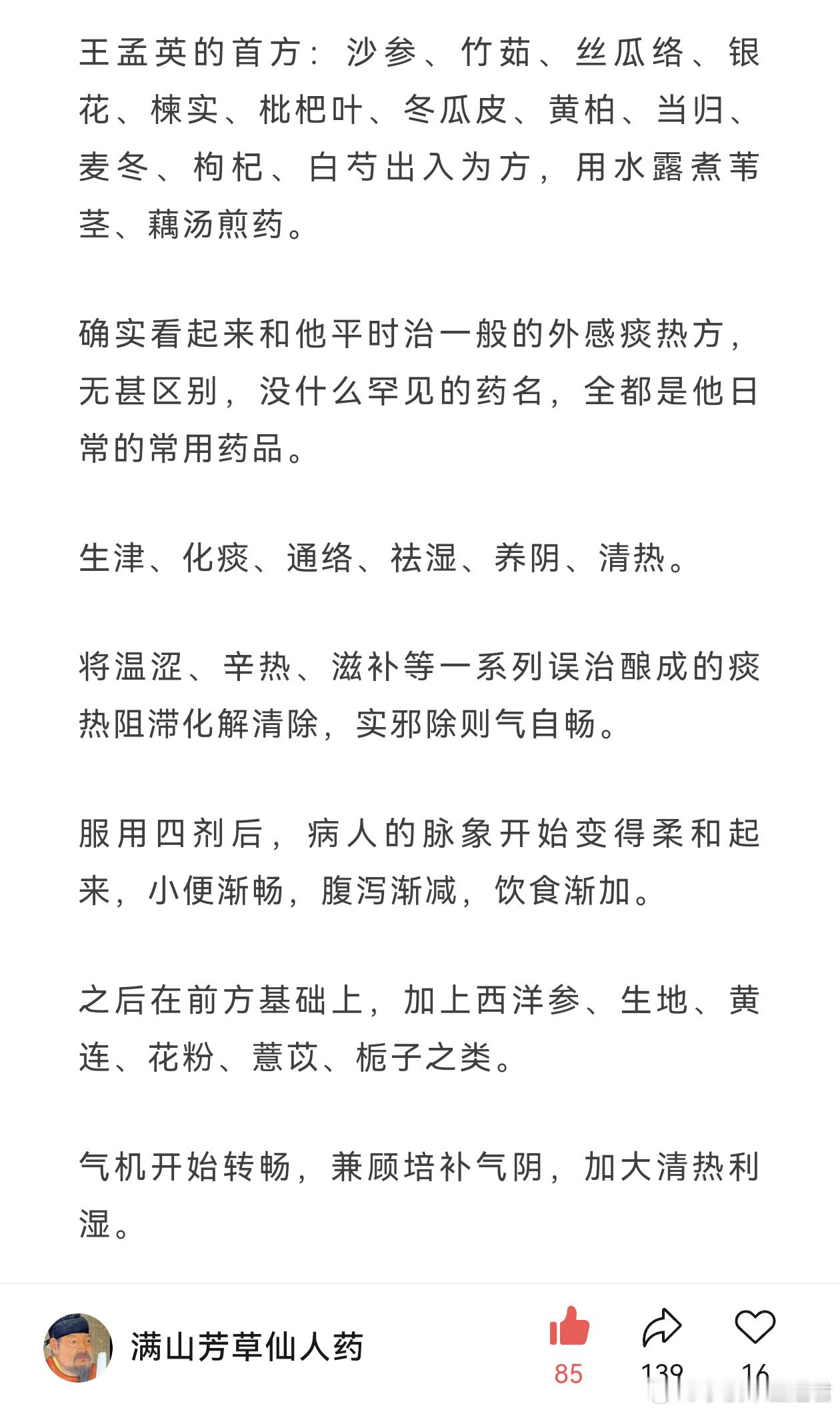 我前年下半年到去年上半年,集中精力学习伤寒论和经方,学得很浅,皮毛而已,临床也在有意识地使用。到去年十一以后,我发现辛温之品在我处的江南,不那么好用,于是开始接触王孟英医案,可惜不得其门而入,没有真正理解应用。今年夏天江南暑温酷烈,入秋则温燥盛行,我切身感受到“阴虚夹湿”病机的形成和其在杂病中的关键作用,以及广泛的误治,也就是说,王孟英那个时代滥用辛温、温补、滋腻,导致的阴虚夹湿、阴虚痰热,在今天依然很多。上午看熙越老师公众号,发现他这篇讲孟英救误的文章很精彩,借花献佛,分享给大家。阴虚夹湿,阴虚痰热的治疗,王孟英是王者!