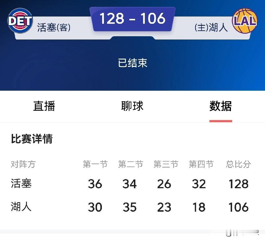 活塞就像一个18岁的小伙子,湖人像个60岁的老头,没防守,没篮板,没速度,没激情,死气沉沉。该输!