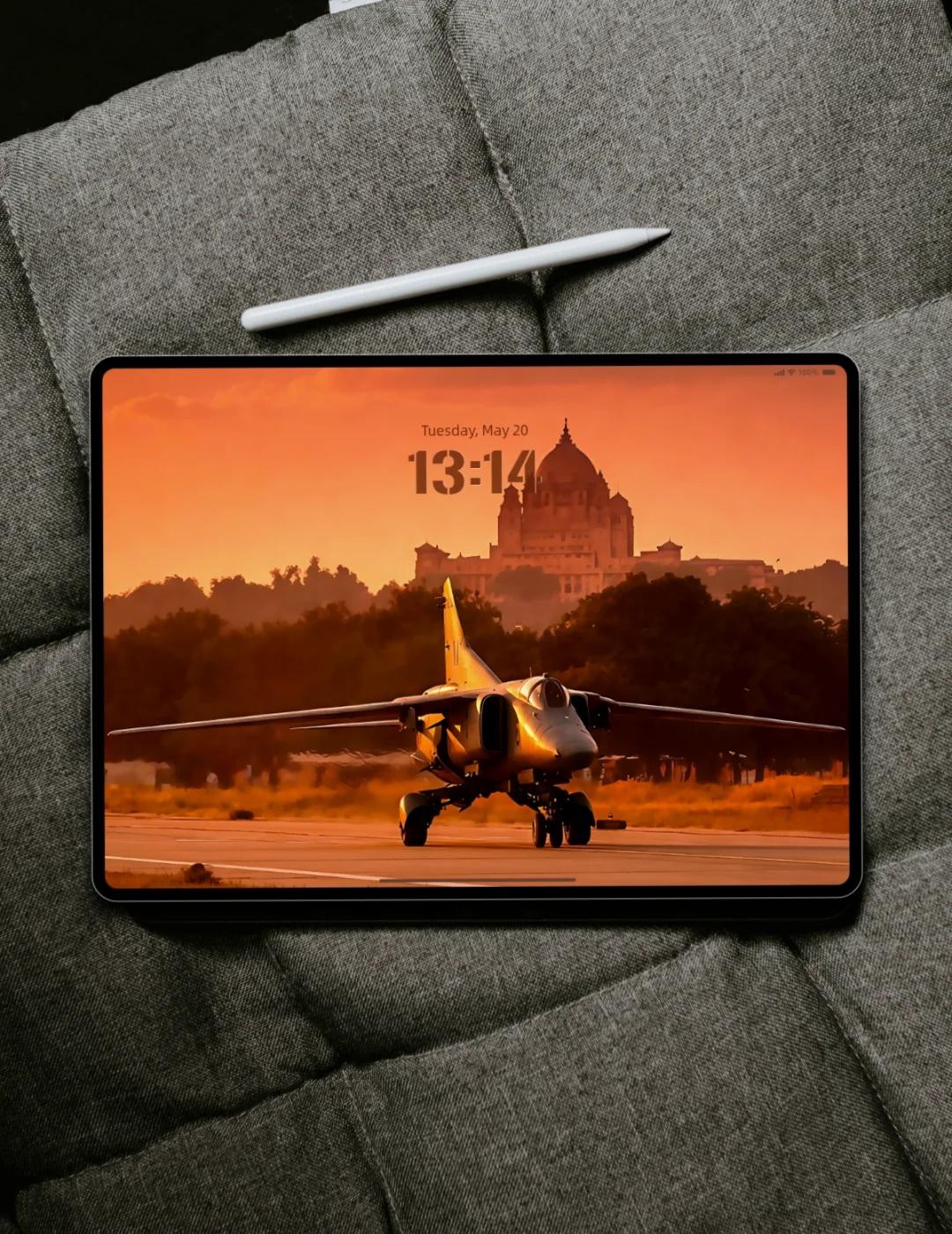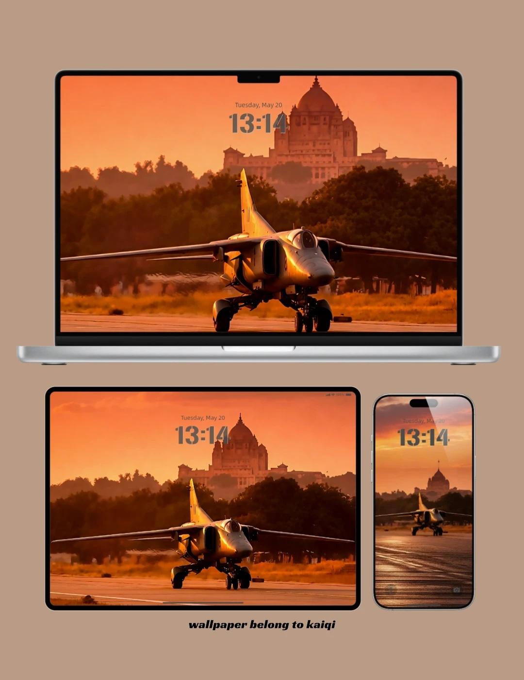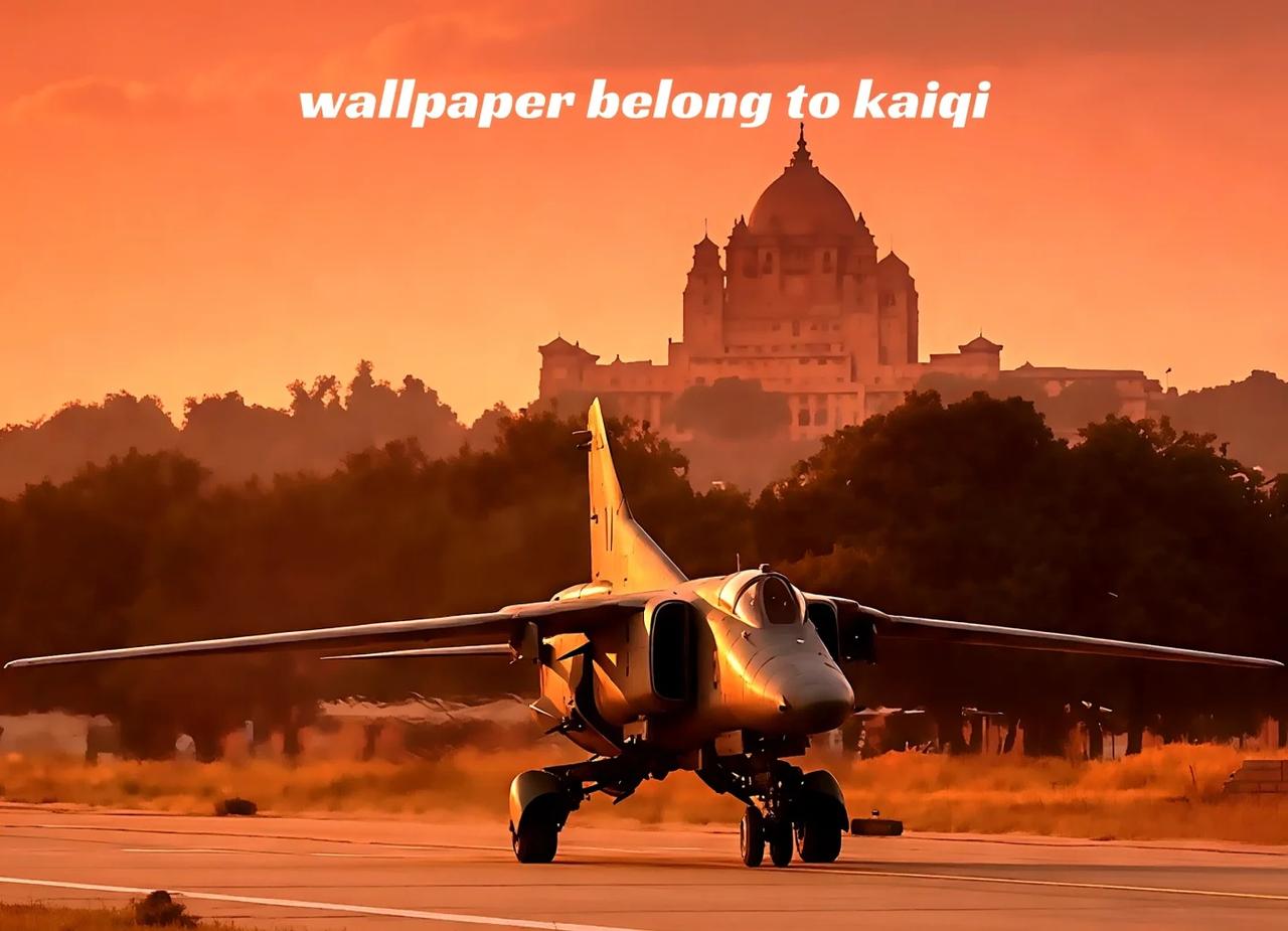 一架印度空军MIG-27鞭挞者在晨曦中起飞 航空摄影 航空 飞机拍摄 超清世界 战斗机 军事 飞行 武器装备 手机壁纸 图中远处的建筑是乌麦巴旺皇宫 (Umaid Bhawan Palace)。