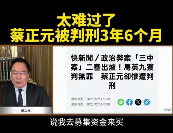 蔡正元因二十几年前的旧案,被判刑三年6个月,事情的来龙去脉如何?请看下面的分析 12月31日蔡正元在节目中透露,被台湾法院判刑三年6个月,并且被裁定不能上诉,如无意外接下来就不得不进监狱服刑了。 案件的核心要点是法院认定:蔡正元利用职务之便,侵占阿波罗公司资金,涉案金额近3亿元,用于清偿个人房贷、支付竞选广播费等,构成业务侵占 。 但是据蔡正元自述,阿波罗公司是他个人独资创办,那么为何法院裁定他侵占阿波罗公司的资金呢? 咱们接下来用通俗的话来掰扯这事,根据台湾方面的相关法律规定,公司是独立“法人”,不是你的钱包,哪怕你是唯一老板,也不能不按规矩拿公司的钱,蔡正元正是踩了这条红线,被民进党抓住把柄才无法脱身! 首先,看核心逻辑:公司钱≠你的钱 比如,蔡正元开一家店(阿波罗公司),哪怕就你一个老板,这家店在法律上也是个独立的“人”,有自己的账户、账本和规矩。 也就是说店里的钱是“店的钱”,只能用于进货、付房租这些店的开销;你个人要花钱,得按规矩走,走正规的财务流程,比如分红、发工资,不能直接从收银台拿,否则就是“监守自盗”。 而蔡正元的问题在于,他是阿波罗老板+中影董事长,阿波罗账上有约3亿(来自中影减资款,本应用于公司业务),他没走任何合规程序,直接拿去还自己房贷、付竞选广播费,账目也没记清楚,所以被法院认定这是用职务之便把公司钱据为己有 了。 第二,法院是怎么认定他“侵占”的呢? 1. 钱的来源不单纯:这笔近3亿的资金不是他个人零花钱,是中影给阿波罗的业务资金,用途受公司规则约束,不能随便动 。 2. 拿的方式不合规:没开股东会、没做财务记录,也没走正规转账流程,直接把公司钱转去个人用,这在法律上就是挪用侵占。 3. 主观上想占为己有:法院查下来,他用信托、投资等名义掩盖资金去向,不是为了公司经营,而是为自己谋私利,符合“业务侵占”的主观要件 。 第三,蔡正元的说法为啥不被法院采纳? 1.他说“阿波罗是我独资的,钱就是我的”,但是法院不认,独资不代表可以乱花钱,公司和个人必须账目分开、程序合规,老板也得守规矩。 2.他说“是帮国民党救中影”,但法院认为就算是为了“帮党”,也不能用违法挪用公司资金的方式,动机再好也不能免罪 。 所以蔡正元就这样被定罪了! 不过话又说回来,这事说到底本质是受政治因素推动,也就是民进党想要“办”蔡正元。为什么这么说呢? 因为这个案子早在国民党当政时期检调曾以“查无不法”结案,蔡正元自然觉得没事了。没想到后来民进党当政后重启调查,这时才发现“补程序”已经来不及了,而且还留下刻意掩盖资金流向的痕迹 ,给对方抓住把柄,以至于无法脱身。 根据节目中蔡正元和三妹的对话来看,民进党重启调查更重要的目标应该是想“法办”马英九,但蔡正元太仗义没有听从民进党指示去“咬”马英九,所以就变成现在这种不利局面了! 本来蔡正元当时是为了帮助党主席马英九化解国民党的财务危机,然后在没人敢出头接收的情况下,用自己的公司去接收国民党的党产变现,没想到后面把自己弄得栽进去了,太大意了! 尽管蔡正元的某些政论观点我不认同,但是不管怎么说,蔡正元为人仗义这点很不错!