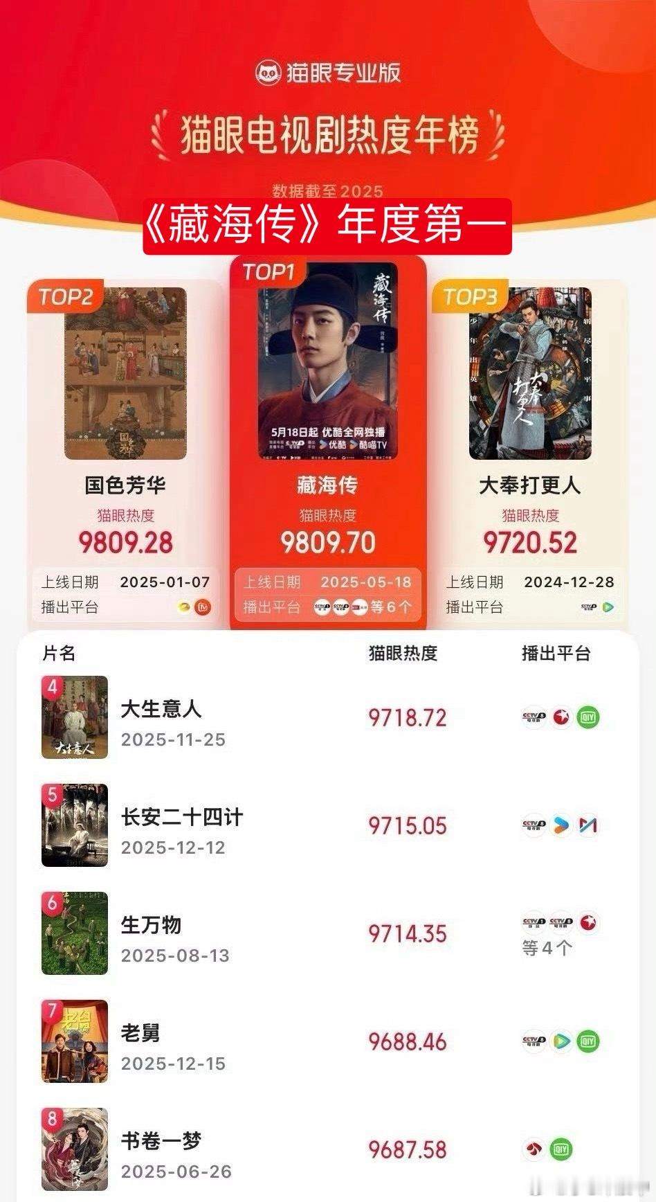 肖战藏海传2025热度总冠军腾讯娱乐2025年度影响力剧集人民日报认证藏海传中国爆款 腾讯娱乐2025年度影响力剧集及角色榜单:年度剧王👑《藏海传》全面登顶无短板:古装传奇剧TOP1🏆/年度电视剧角色热度TOP1🏆,肖战凭借“藏海”角色斩获年度角色热度冠军🏆云合/灯塔/猫眼播放量三榜年冠🏆优酷👖🔥热度、招商、拉新、收入史冠🏆肖战唱得闲谨制跨年晚会节目单 2025年各平台年终爆剧认证老外追的中国爆款有藏海传